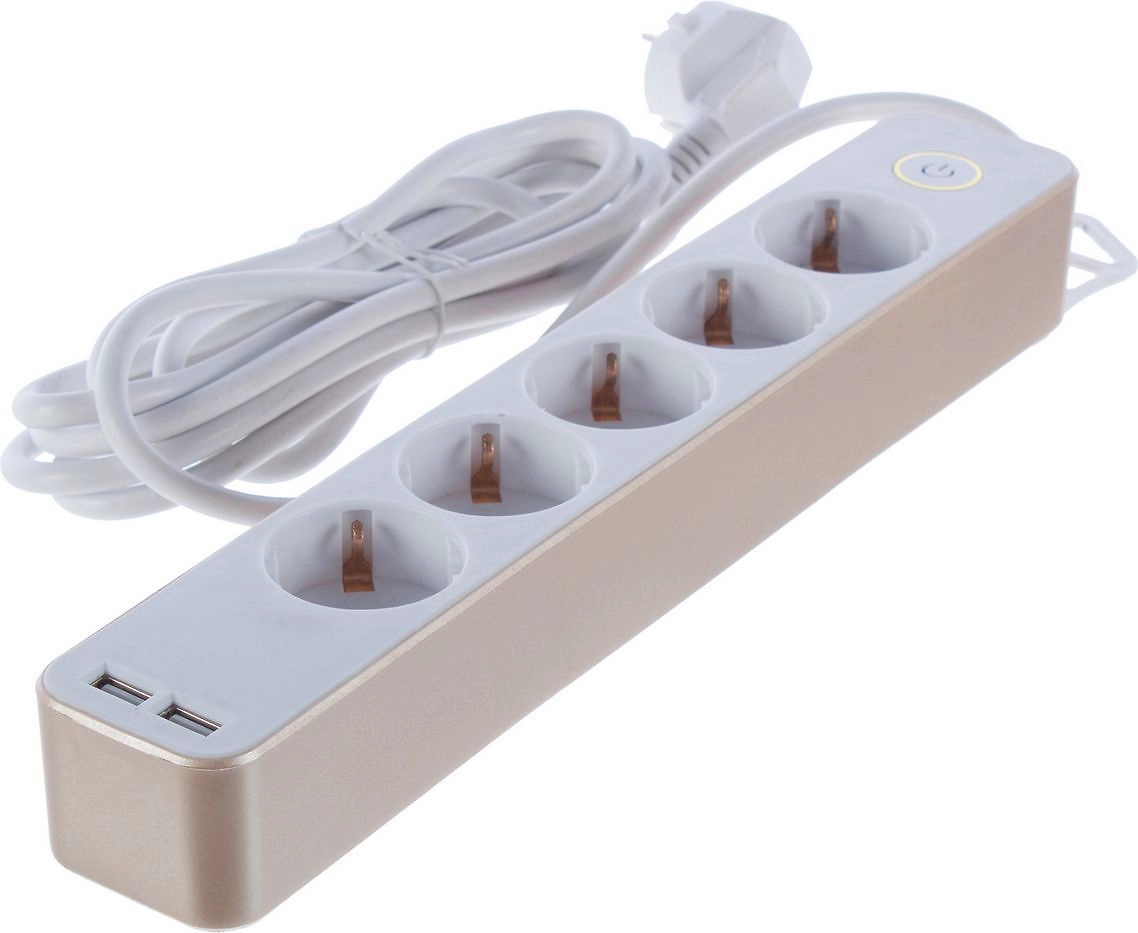 Удлинитель Duwi 32071 5 5 гнезд 3680 Вт с заземлением 5 м - это стильный функциональный прибор в корпусе с золотистым отливом, который добавит в интерьер изысканности.