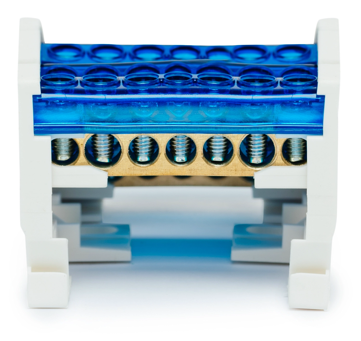 Изолированная шина на DIN-рейку REXANT применяется при комплектации щитового оборудования для подсоединения нулевого провода, провода заземления и фазных проводников.