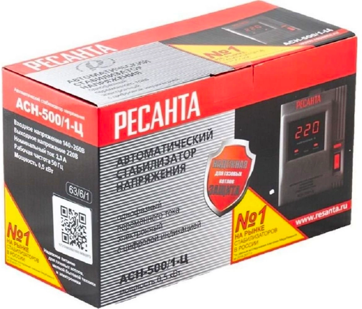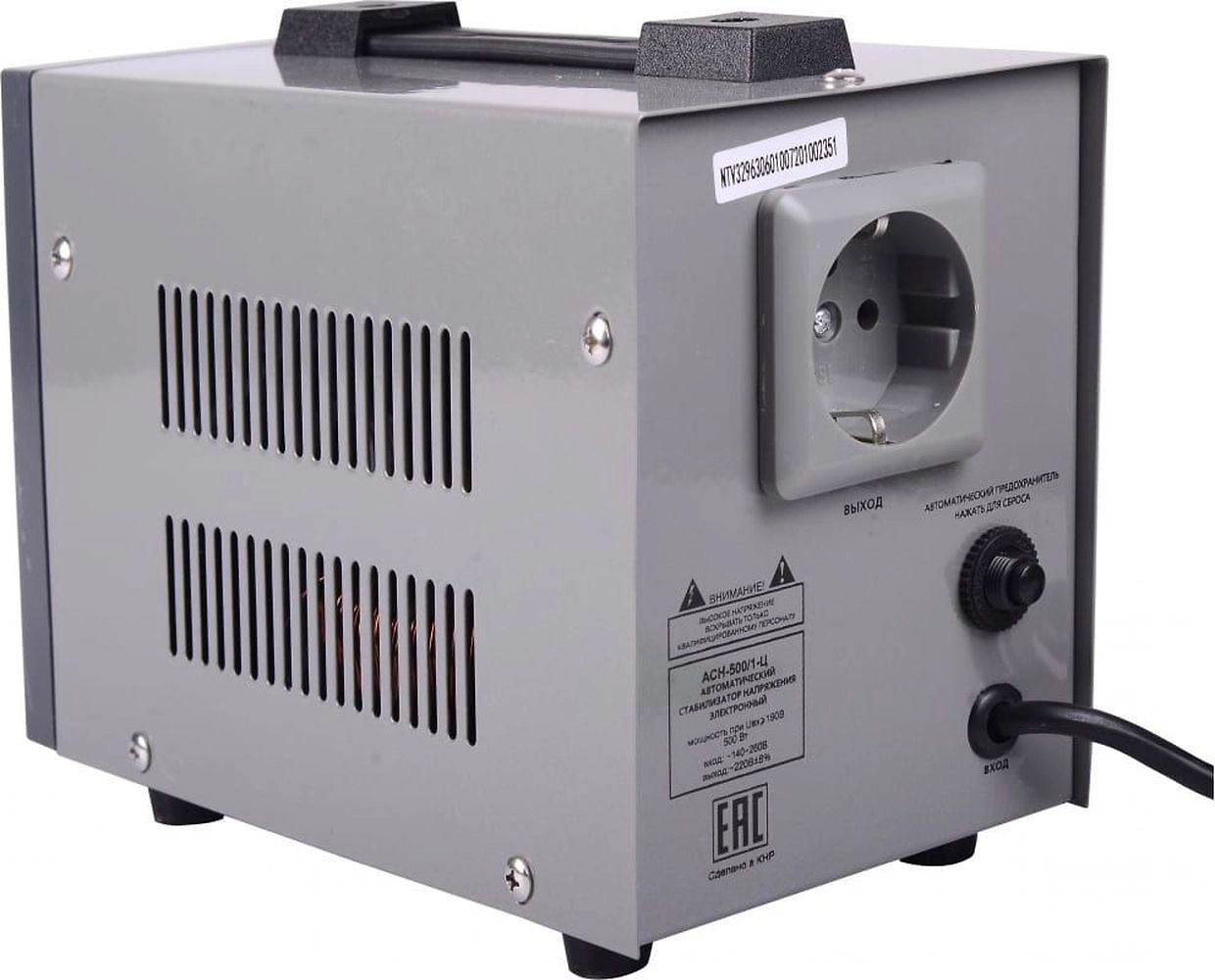 РЕСАНТА АСН-500/1-Ц – компактный стабилизатор для выравнивания входного напряжения. Защищает технику от скачков, перепадов и коротких замыканий в однофазной сети.