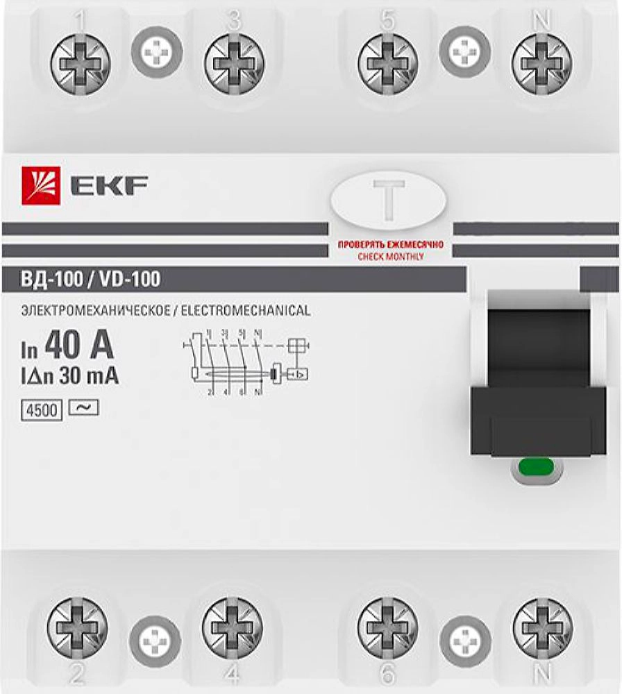Дифференциальный выключатель EKF 4P 40А 30 мА 4500А