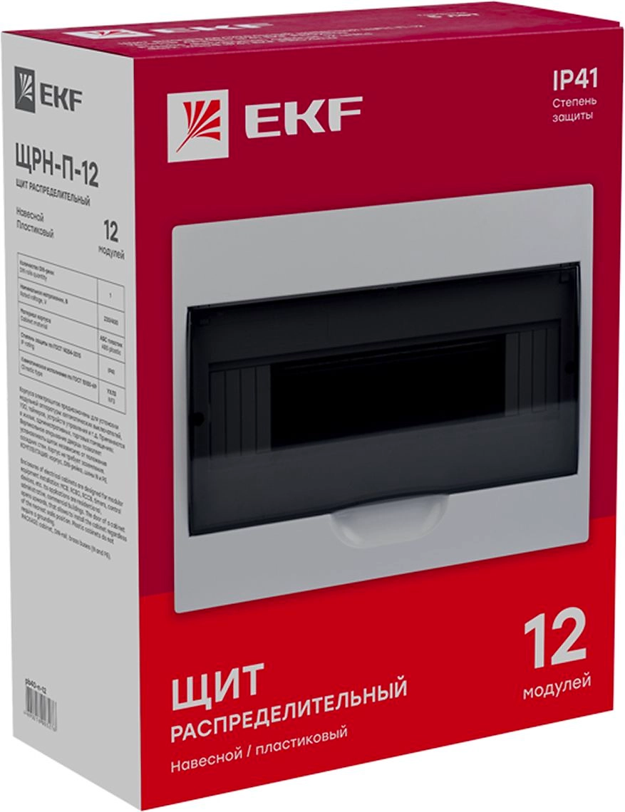 Щит распределительный навесной ЩРН-П-12 IP41 EKF PROxima рассчинан на 12 модулей, располеженных в один ряд. Навесной щит легко монтируется на стену, вертикальное открывание дверцы позволяет устанавливать бокс независимо от положения соседних стен. Электрощиты изготовлены из прочного ABS-пластика, прозрачная крышка прочно прилегает к корпусу.