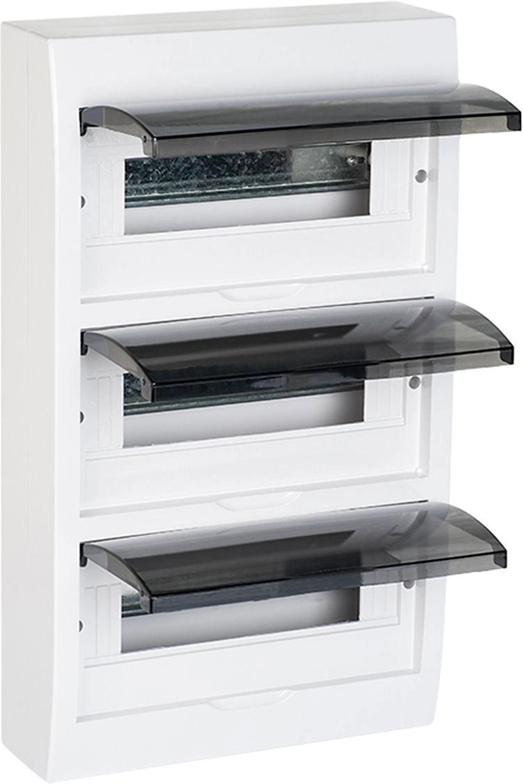 Щит распределительный навесной ЩРН-П-36 IP41 EKF PROxima рассчинан на 36 модулей, располеженных в три ряда. Навесной щит легко монтируется на стену, вертикальное открывание дверцы позволяет устанавливать бокс независимо от положения соседних стен. Электрощиты изготовлены из прочного ABS-пластика, прозрачная крышка прочно прилегает к корпусу.