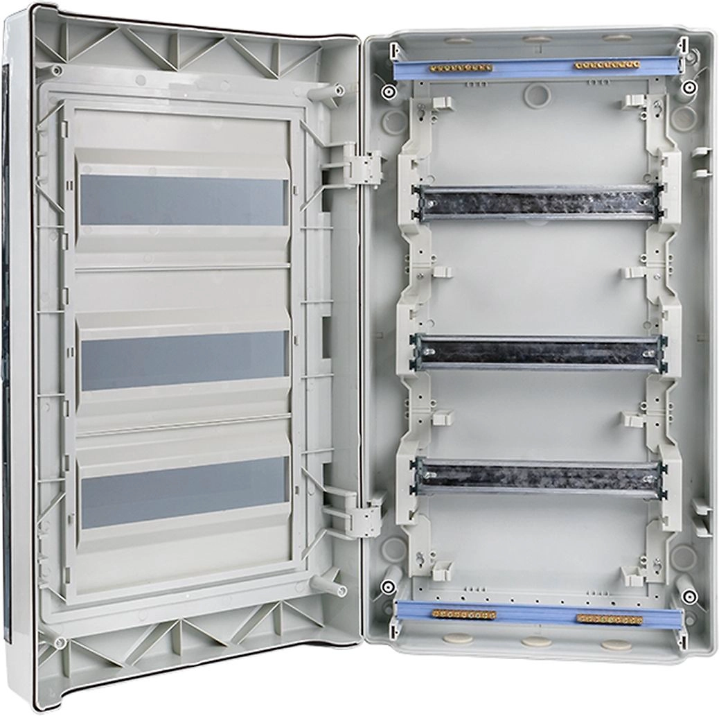 - • Электрощиты изготовлены из прочного ABS-пластика.