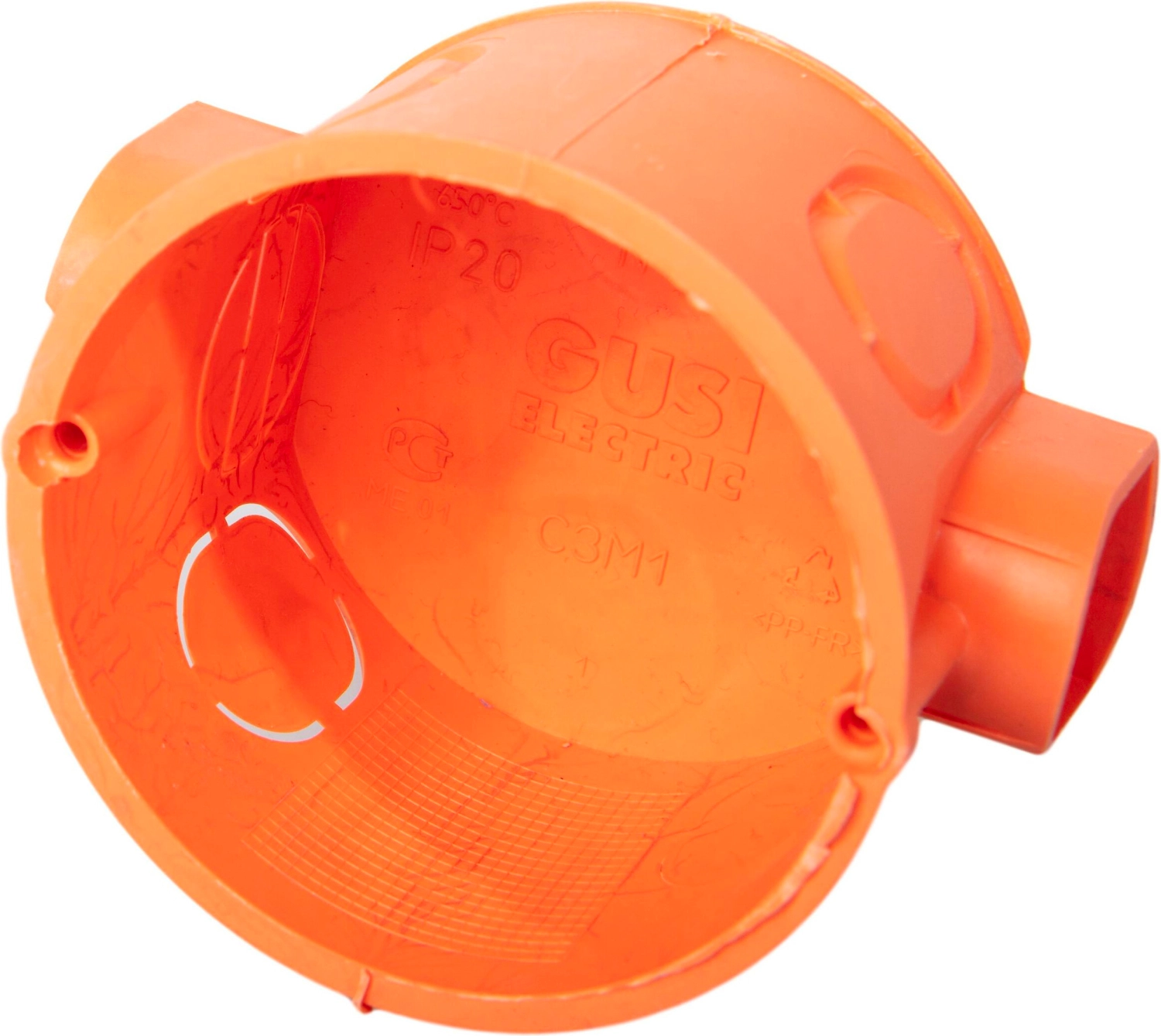 Подрозетник с кабель-каналом для сплошных стен. В стенках предусмотрены легковырезные отверстия для проводов разных типов: от силовых до телефонных и компьютерных. Материал, используемый во всех электромонтажных изделиях серии STANDART, обладает свойствами достаточной прочности и негорючести.