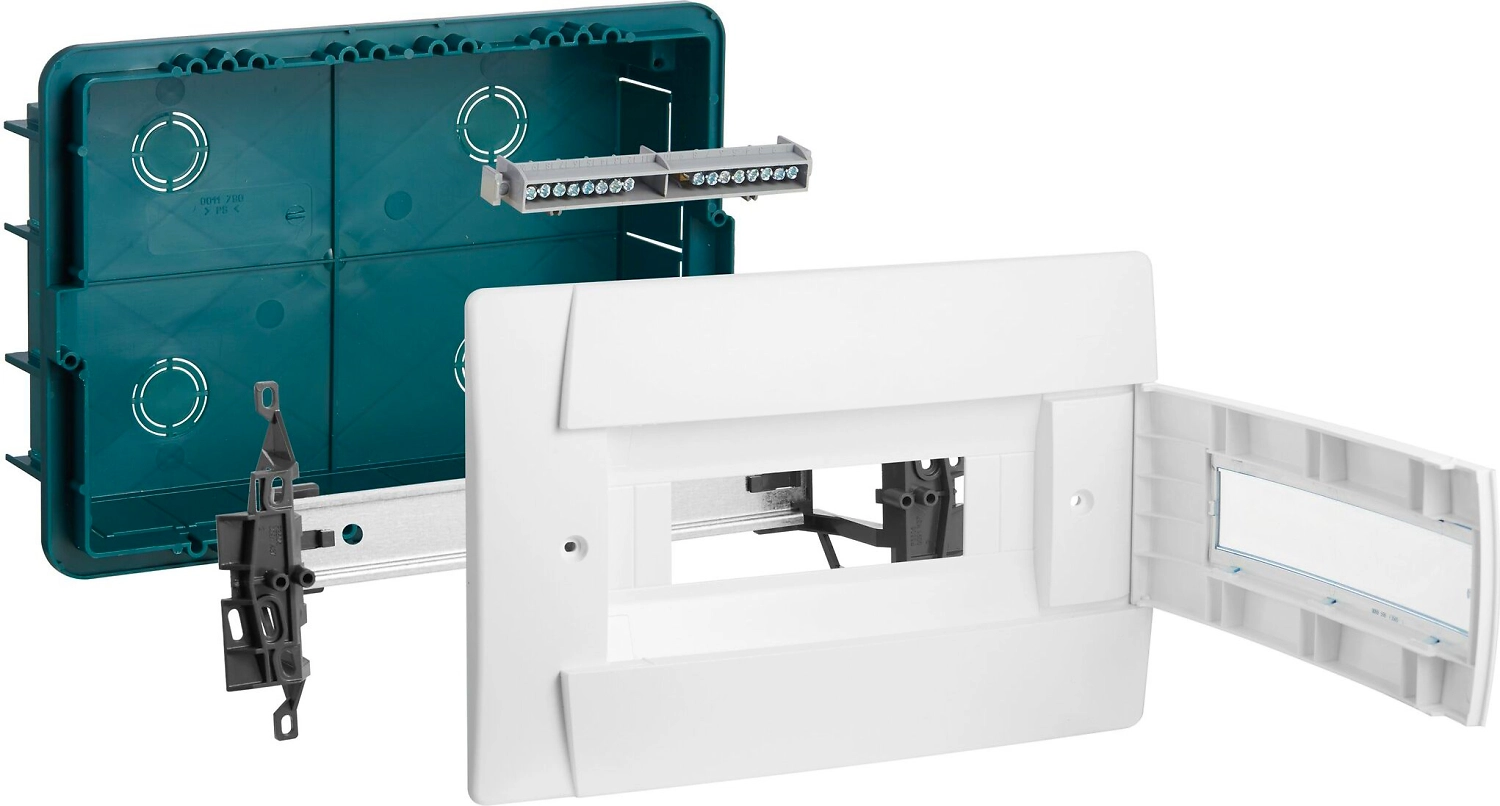Распределительный щиток скрытого типа снабжен 1 рейкой и рассчитан на 12 модулей. Изделие выполнено в белом цвете, из качественного пластика повышенной прочности. Щиток поставляется с шинами RE + N. Используется для размещения автоматических выключателей и других приборов, взаимодействующих с электросетью.
