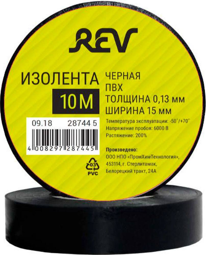 Изолента REV 15 мм х 10 м х 0,13 мм черная