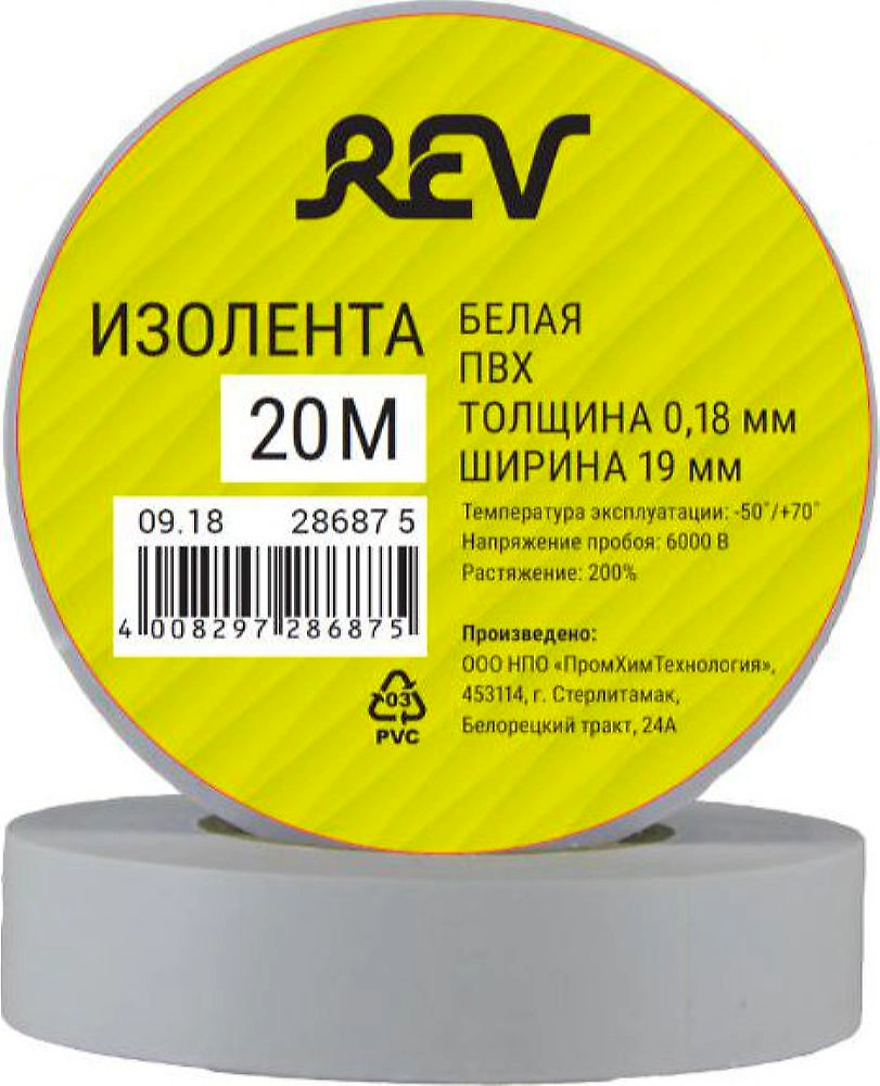 Изолента REV Profi 19 мм х 20 м х 0,18 мм белая