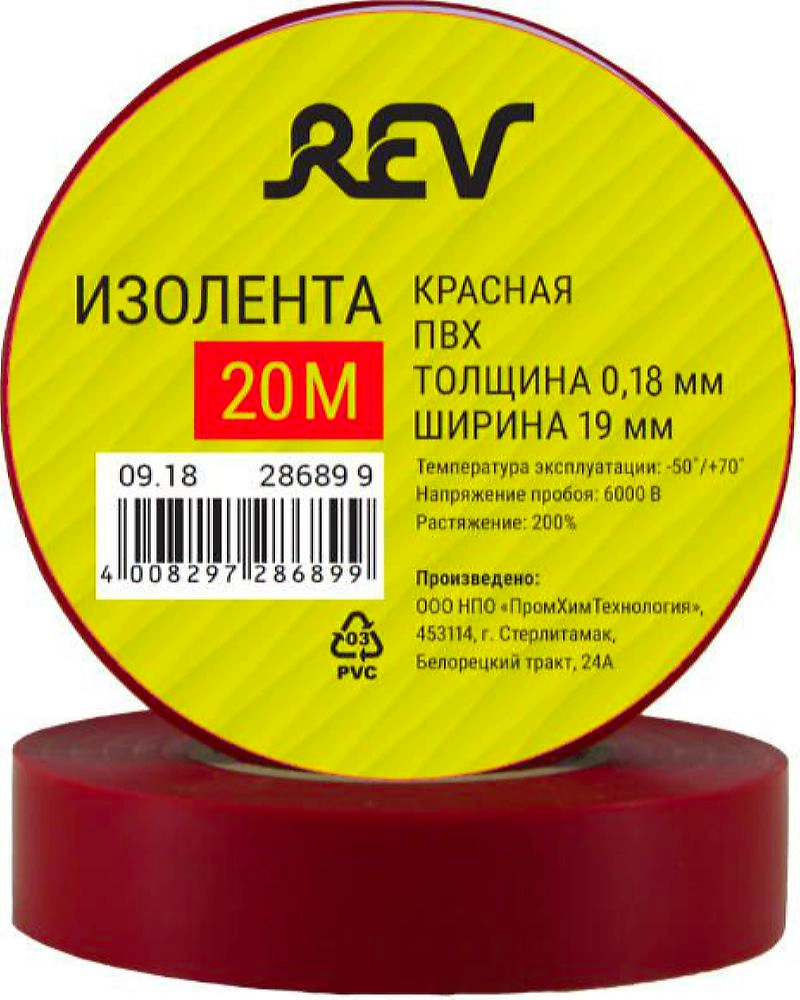 Изолента REV Profi 19 мм х 20 м х 0,18 мм красная