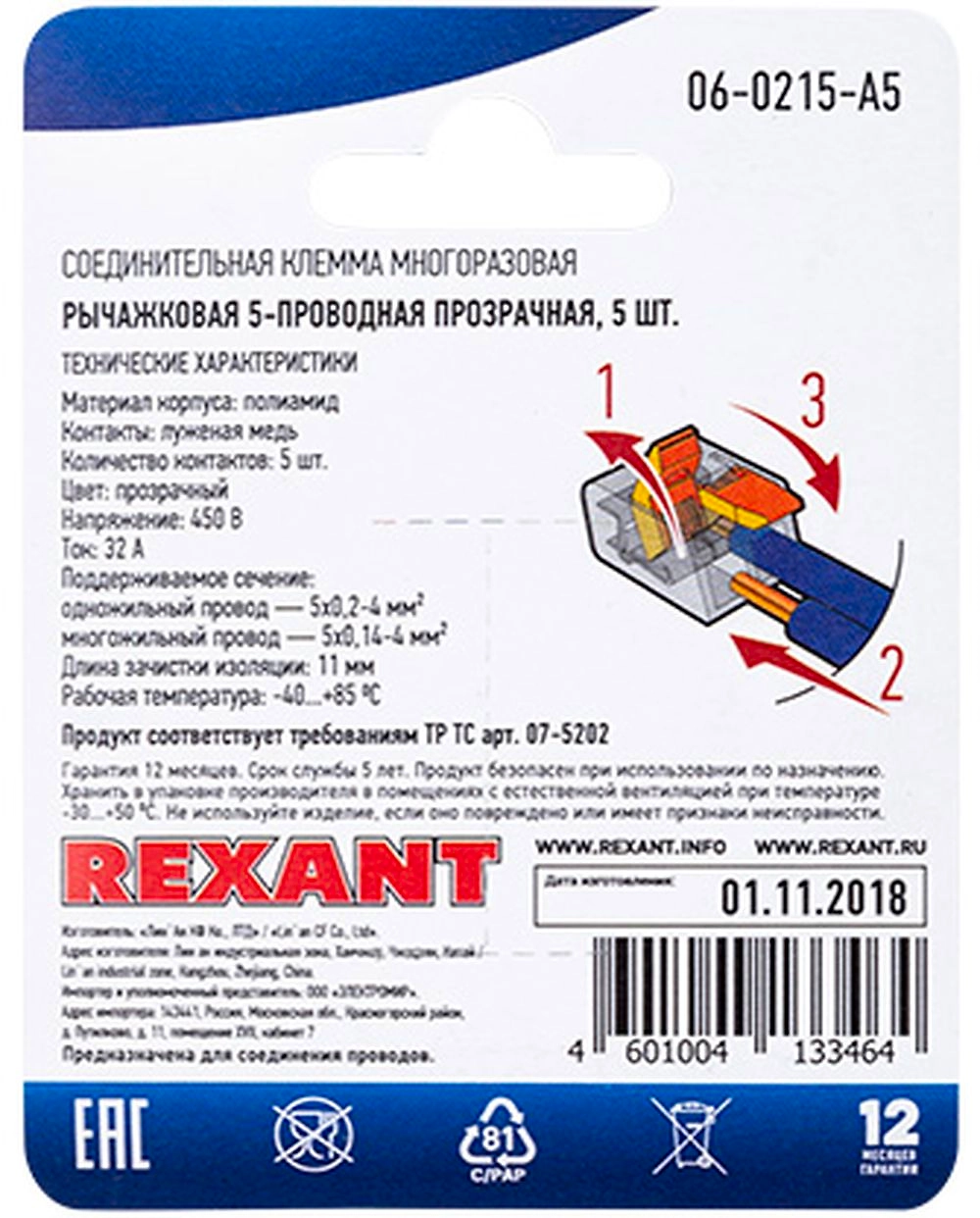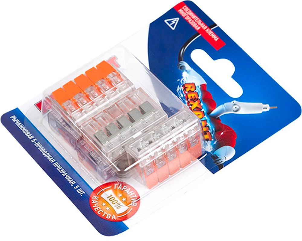 Клемма REXANT рычажковая 5 проводов 4 кв.мм 5 шт