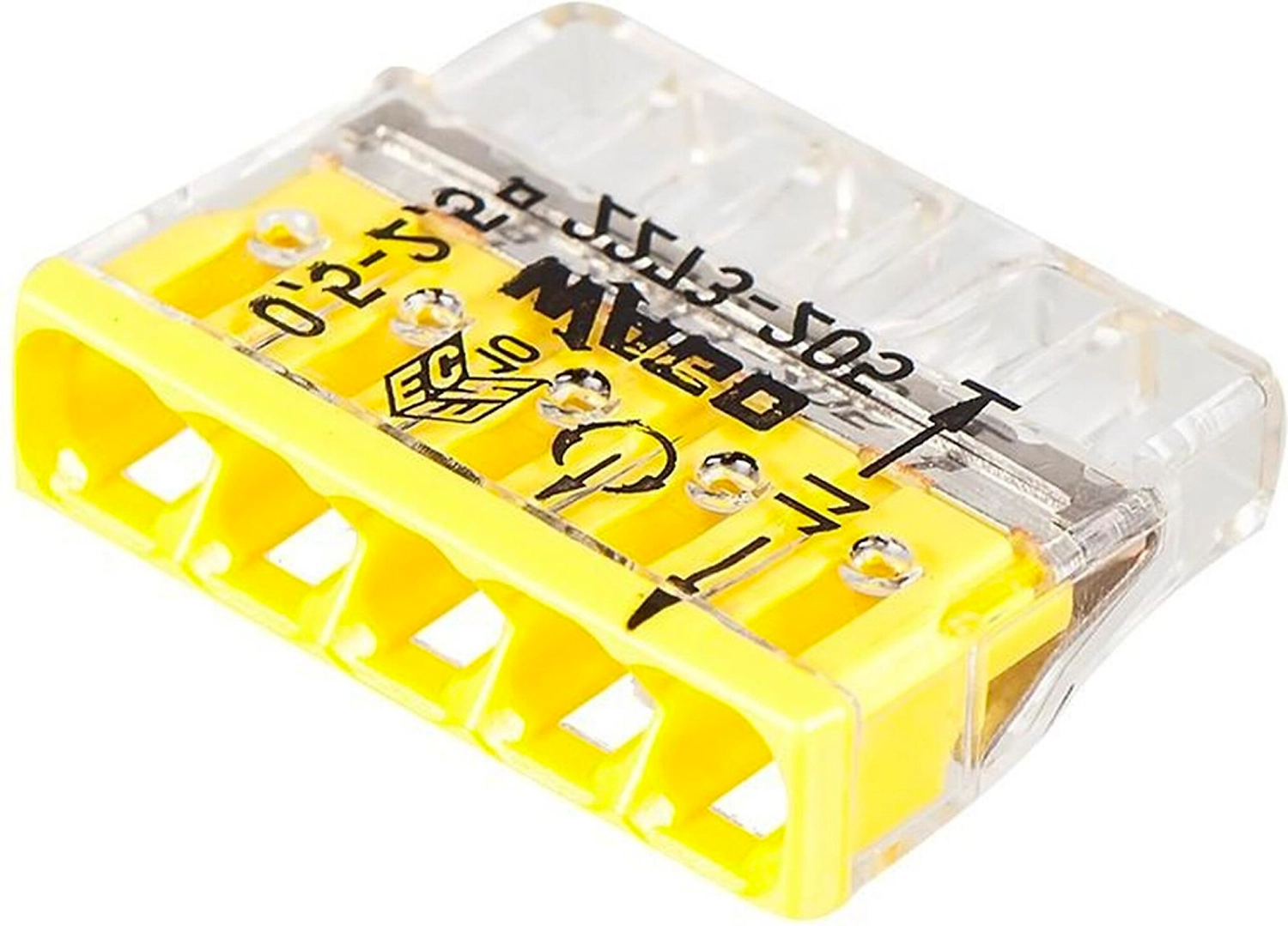 "Электромонтажные клеммы Wago оснащены самозажимным механизмом, позволяющим быстро и надежно соединить между собой пять проводов.