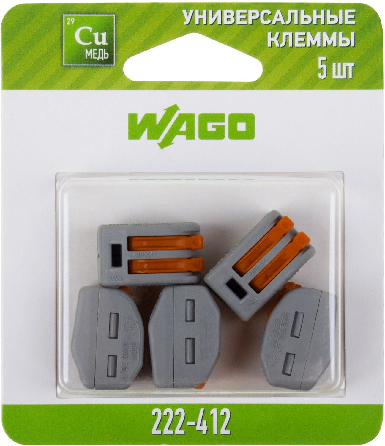 "Экспресс-клеммы Wago оснащены удобным механизмом, позволяющим быстро и надежно соединить два медных или алюминиевых провода. Жила кабеля вставляется в клемму и сразу же фиксируется самозажимным контактом. Клеммы изготовлены из качественного материала, обеспечивающего готовому изделию хорошие технические характеристики. Модель подходит как для одножильных, так и для многожильных кабелей. Клеммы предназначены для одножильных, многожильных и тонких многожильных проводников. Благодаря возможности подсоединения проводников сечением 0,08-2,5 кв.мм/4 кв.мм они могут использоваться для подсоединения осветительных приборов, жалюзи, систем управления дверями и воротами, внутренних телефонов, насосов, и т.д. Не предназначены для монтажа проводов с алюминиевыми жилами, а также не предназначены для проведения работ при открытом монтаже на улице, так как не обладают достаточной защитой от воды (IP20). При монтаже на улице клеммы должны быть защищены монтажными коробками, электрическими щитками, корпусами приборов или аналогичными устройствами с соответствующим классом защиты. Особенности: зажим проводов в клемме осуществляется при помощи оранжевых рычагов, наличие специального паза в корпусе клеммы для размещения рычага в закрытом положении надежно предотвращает случайное отсоединение проводника, возможность измерения электрических параметров цепи без разбора и нарушения изоляции соединения"
