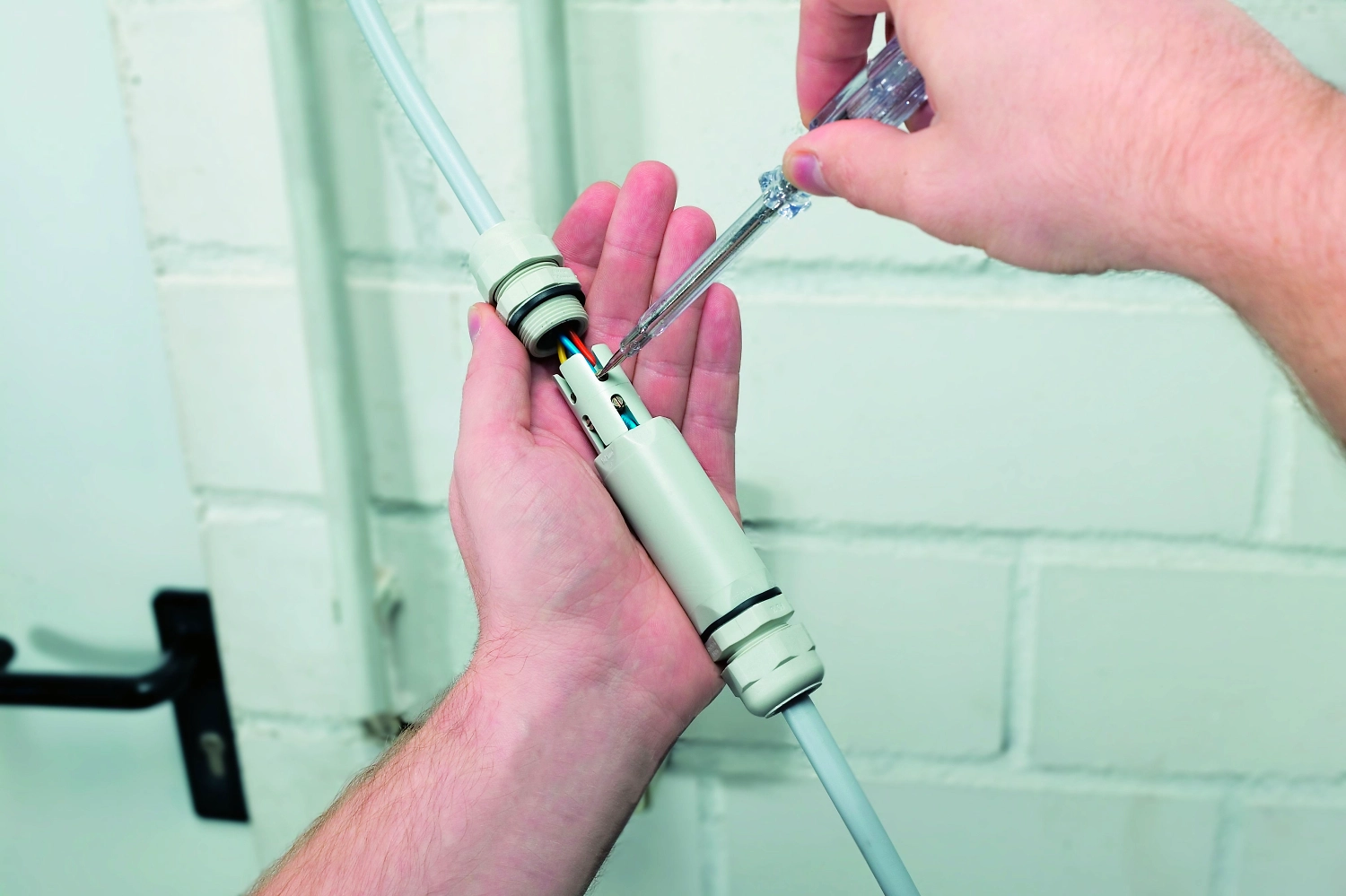 Соединительная муфта предназначена для безопасного соединения проводов диаметром до 2,5 мм. Деталь рассчитана на одновременное совмещение до 5 соединений. Она изготовлен из негорючего пластика и может использоваться в диапазоне температур от -25 ° C до +60 ° C. Кроме того, соединитель имеет класс защиты IP 68 и поэтому подходит для использования на открытом воздухе. Кабельный разъем снабжен зажимной вставкой и кабельным вводом SKV. Кроме того, разъем не содержит галогенов и армирован стекловолокном, что обеспечивает дополнительную защиту в случае пожара.