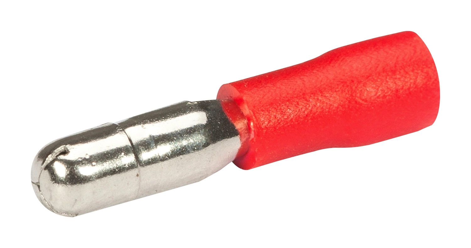 Разъем круглым штекером из латуни/олова оснащен изолирующей красной гильзой из ПВХ, подходит для кабеля сечением жил 0,5 - 1,5 кв. мм. В комплект входит 10 штук.