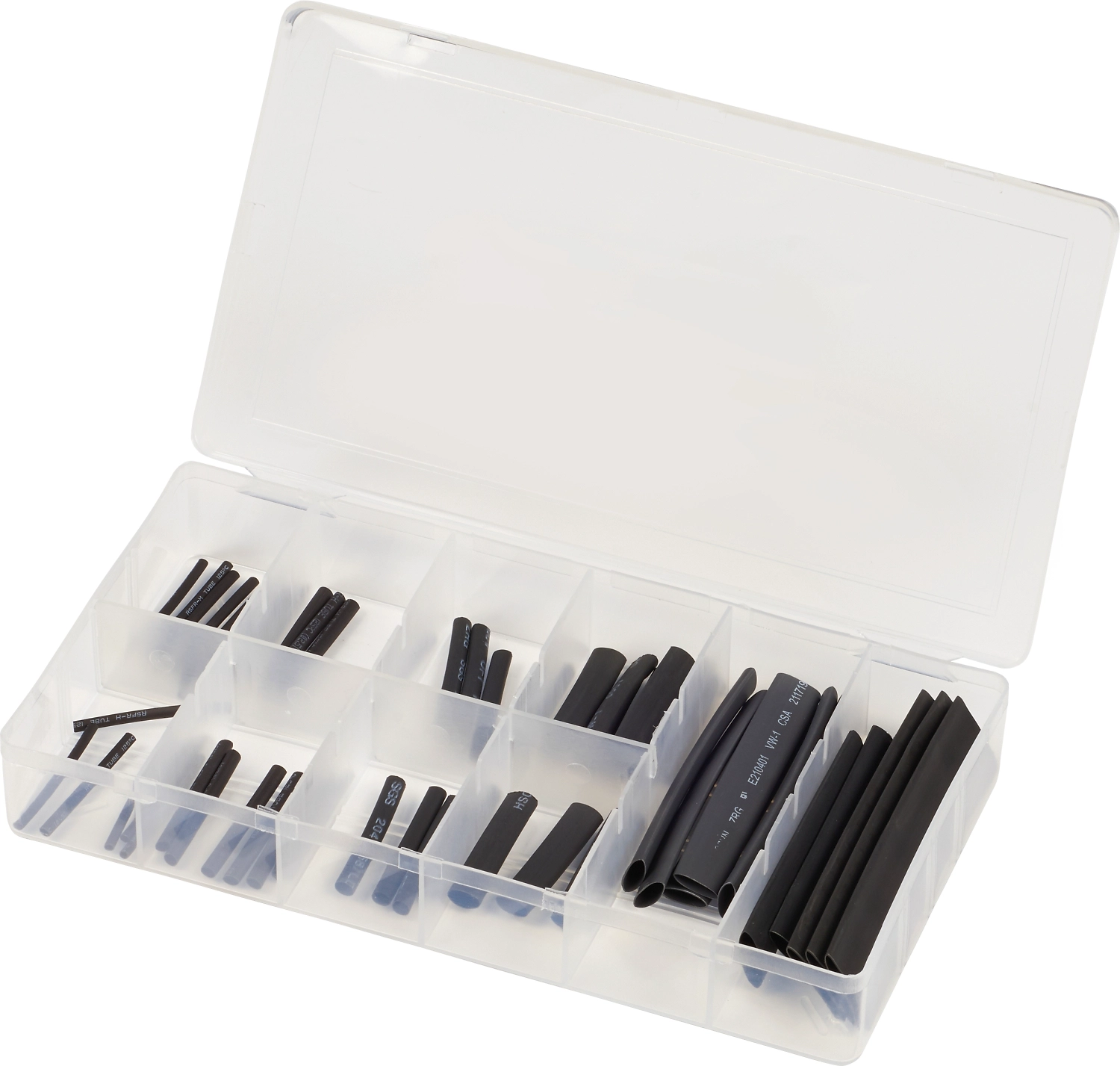 Набор гибких пластиковых термоусадочных трубок из 63 шт. для изоляции проводов и кабелей.