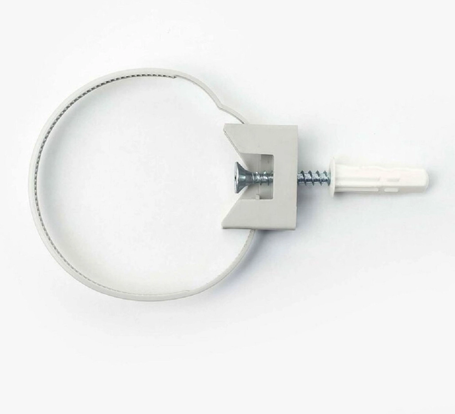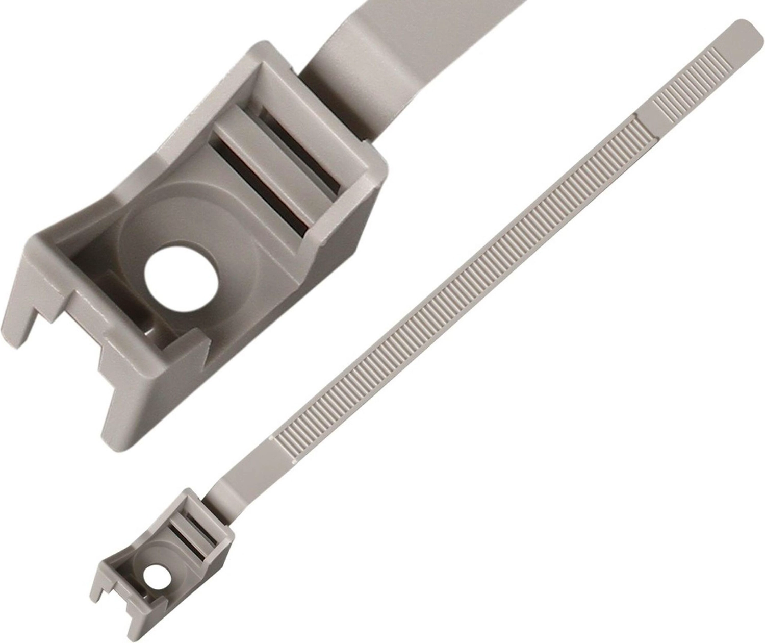 Данный ремешок оснащен специальной площадкой, за которую изделие крепится к стене, потолку или полу. В комплект входят дюбель и шуруп, что позволяет закреплять ремешок в любом основании. Изделие выполнено из прочного нейлона и обладает широким диапазоном рабочих температур, что делает данную модель износоустойчивой и долговечной.