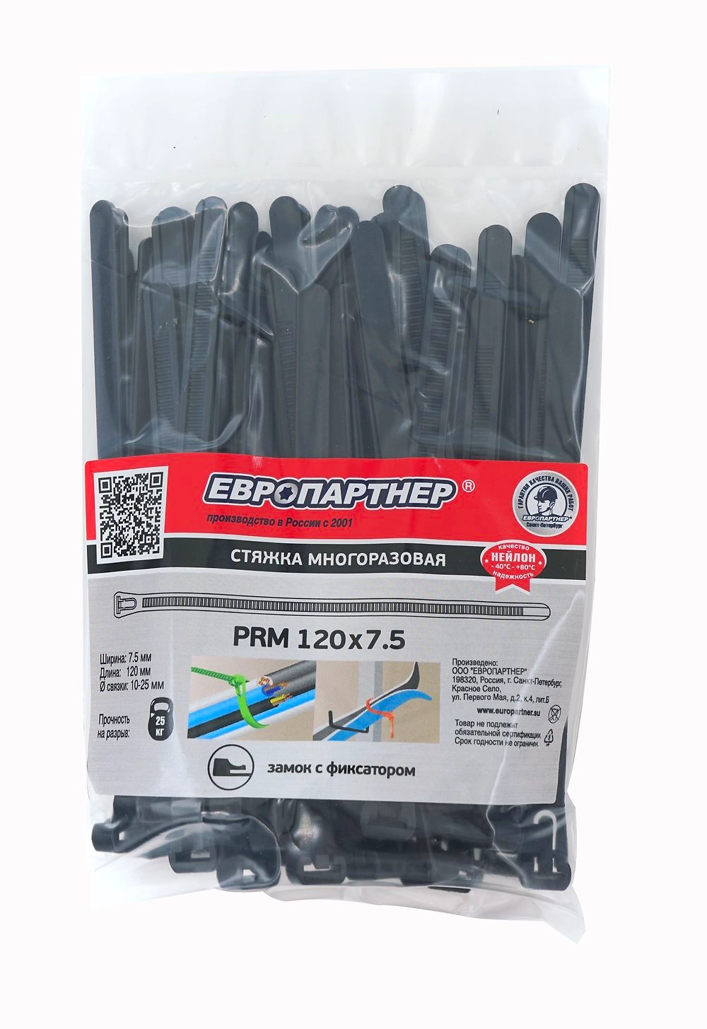 Стяжка многоразовая нейлоновая PRM 7,5х120мм черная (50шт.)
