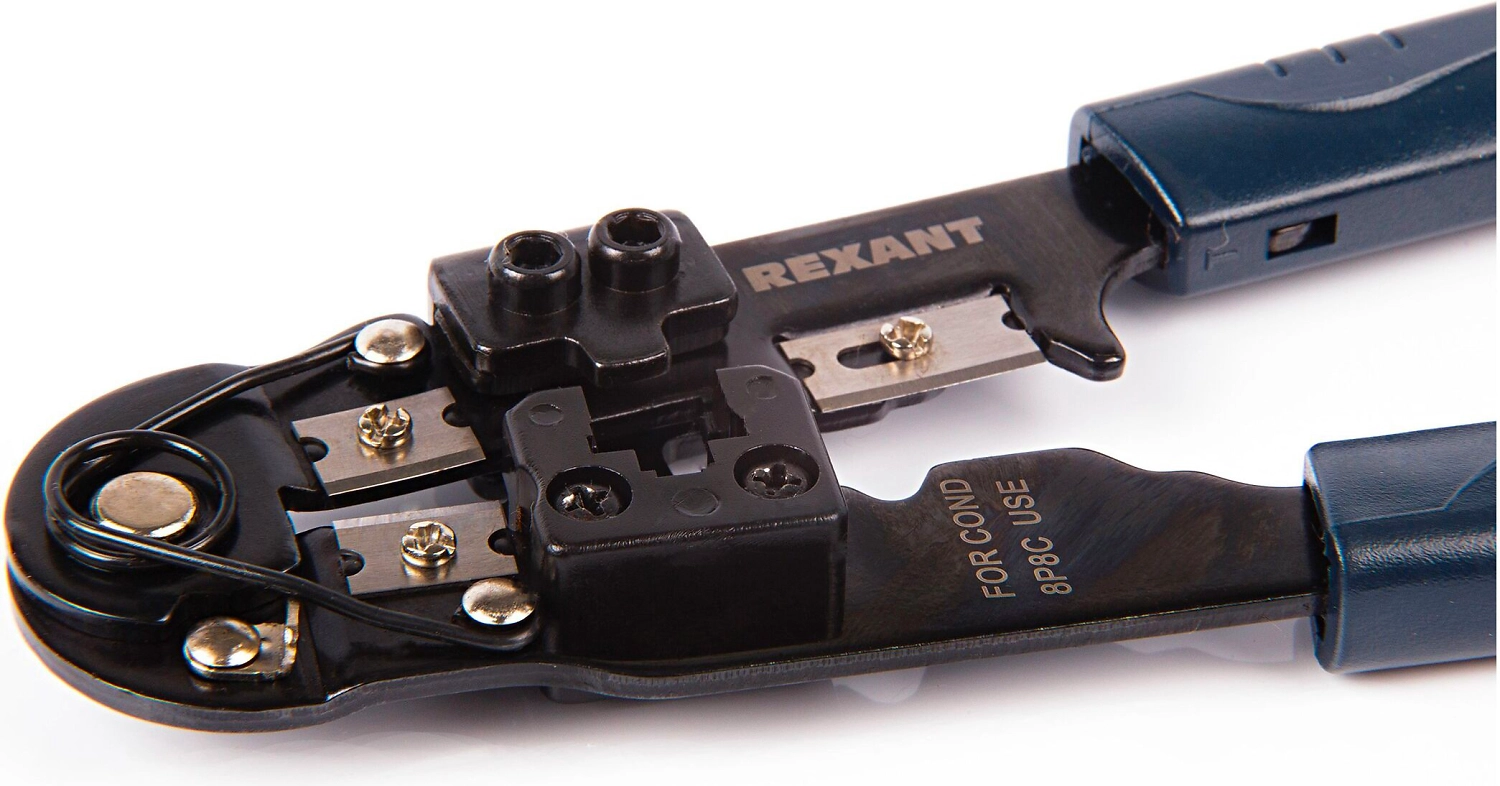 Кримпер для обжима ht-210N REXANT универсальный инструмент, предназначен для обжима разъемов RJ-45 (8P8C), а также для снятия изоляции, как плоских, так и круглых кабелей и обрезки проводов.