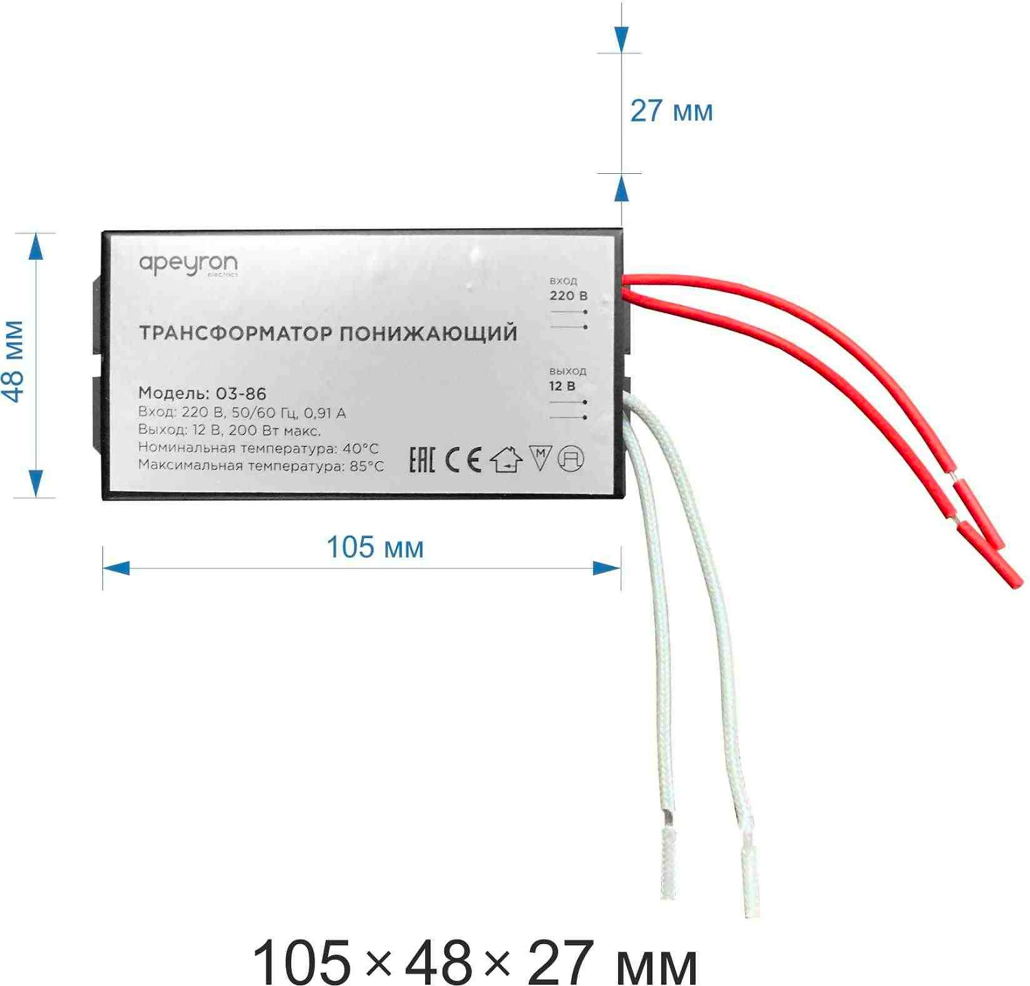 Трансформатор понижающий APEYRON Electrics 03-86 70-200 Вт 12В