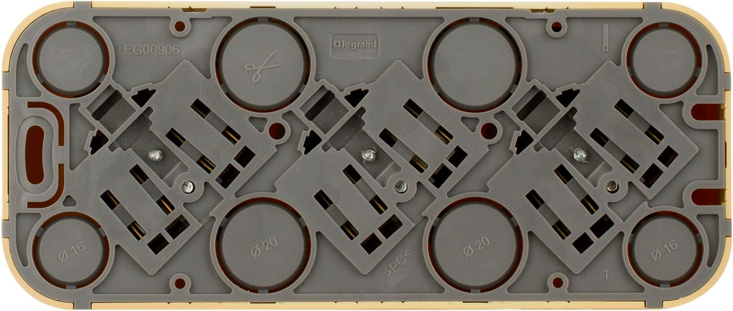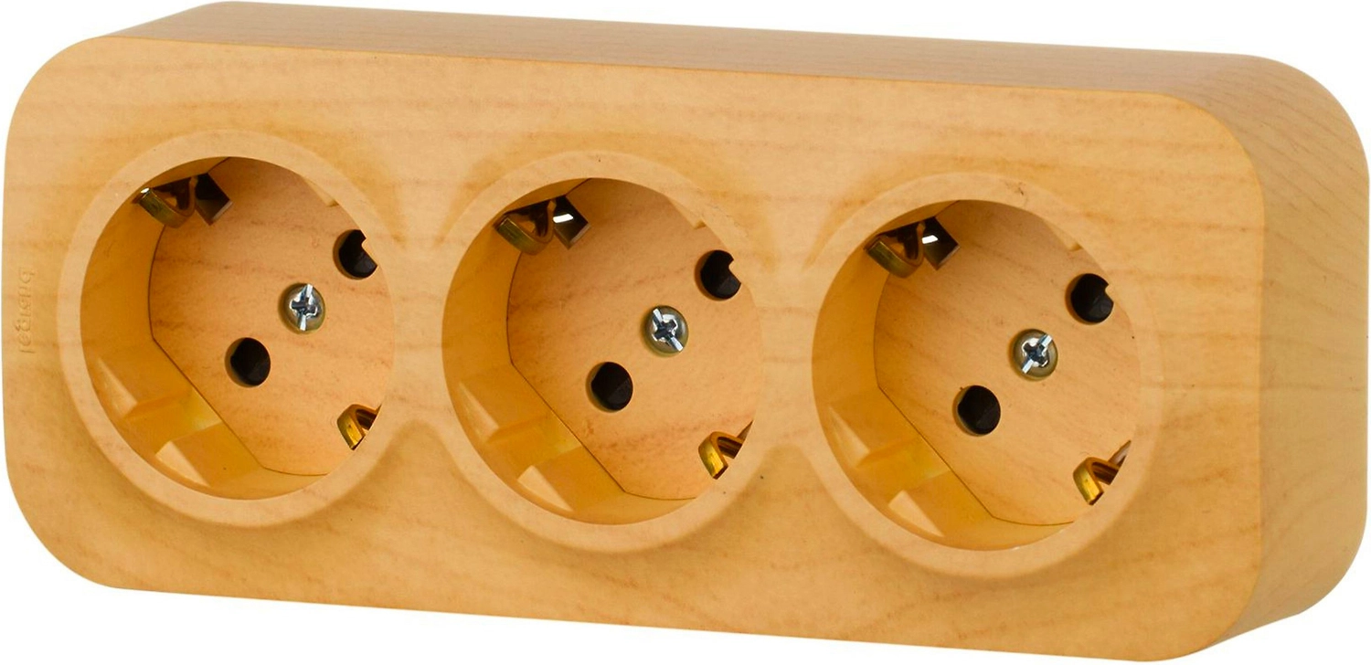 Трехместная розетка 3К+З со шторками, со степенью защиты IP20 может устанавливаться как вертикально, так и горизонтально