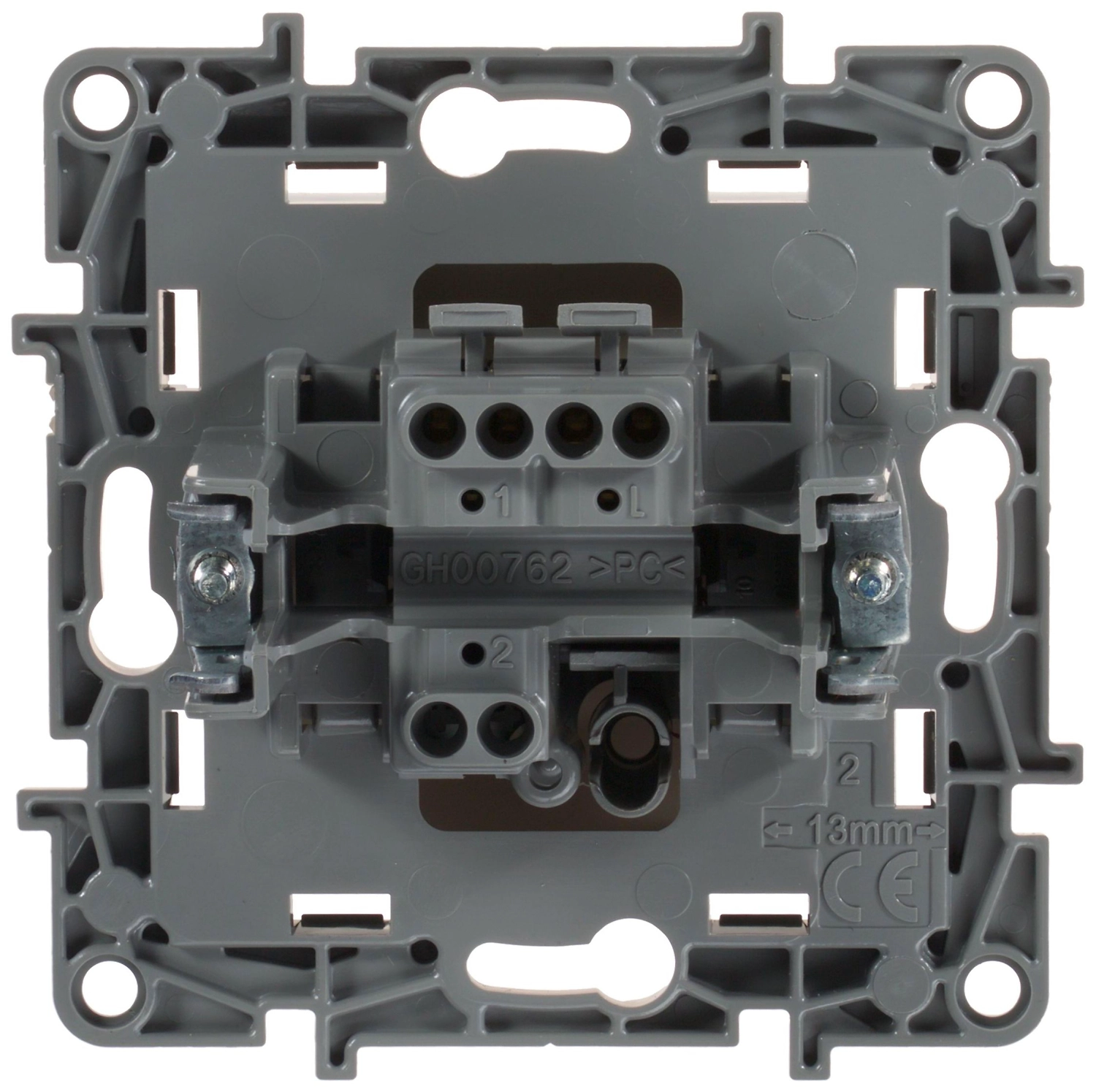 - Выключатель надежно фиксируется в монтажной коробке лапками и винтами.