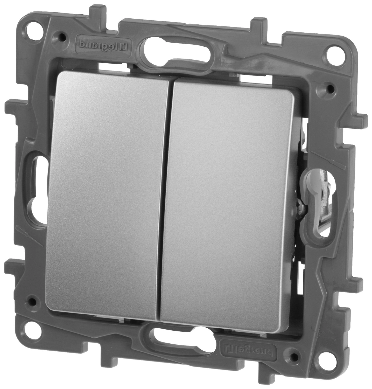 Выключатель двухклавишный ETIKA без индикатора алюминий