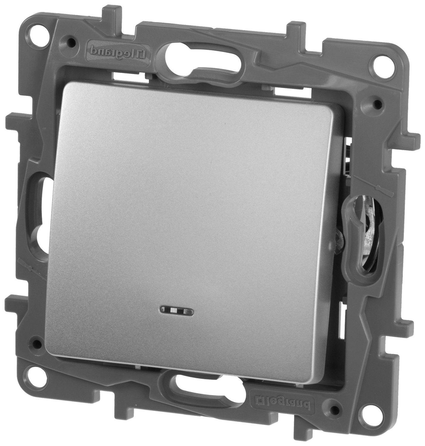 Выключатель одноклавишный ETIKA с индикатором алюминий