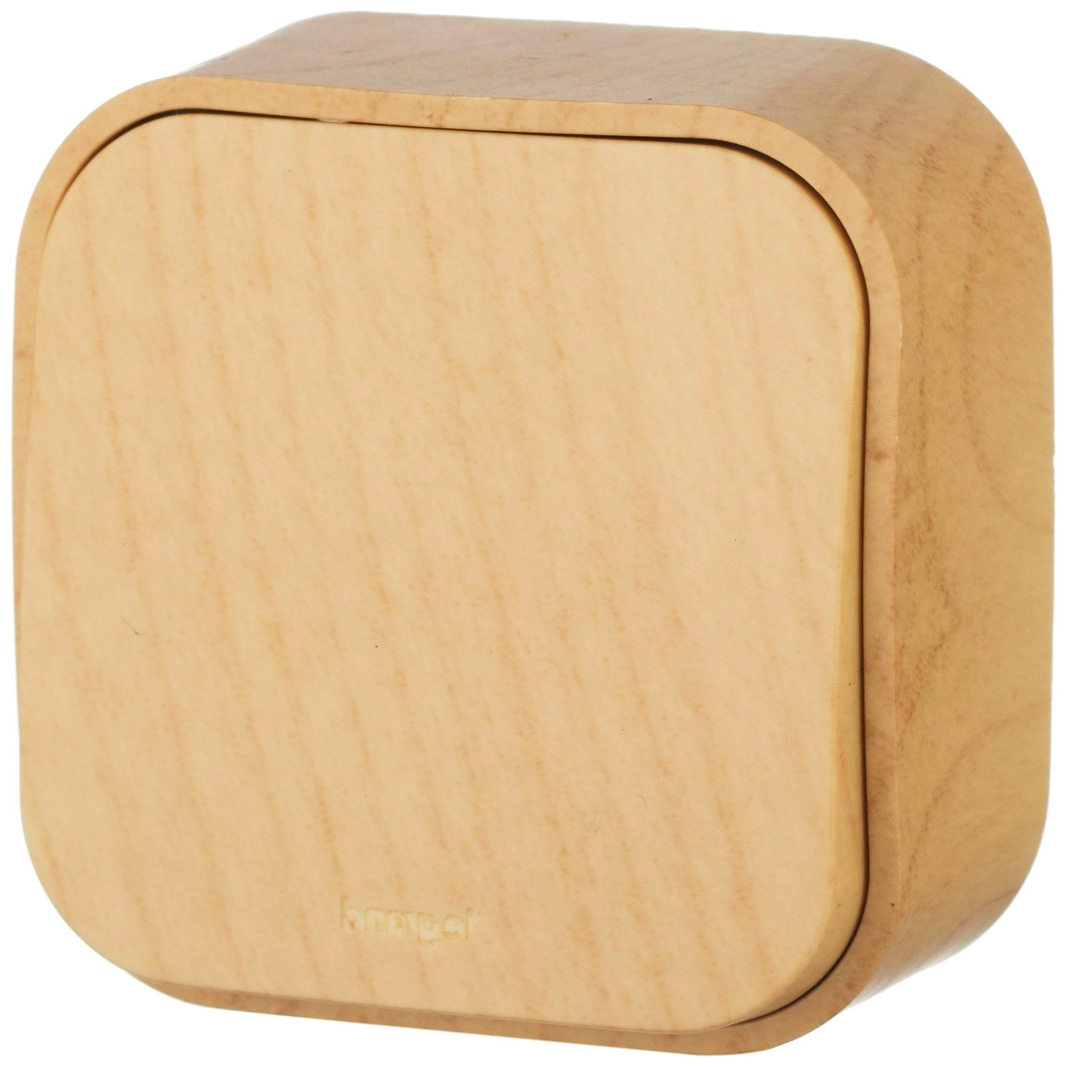 Выключатель серии Quteo используется для включения подачи тока в осветительный или другой бытовой прибор. Устройство предназначено для открытой установки накладным способом. Изделие имеет большую квадратную клавишу с округлыми углами. Данный выключатель изготовлен из прочного пластика под дерево и может устанавливаться в жилых или офисных помещениях.