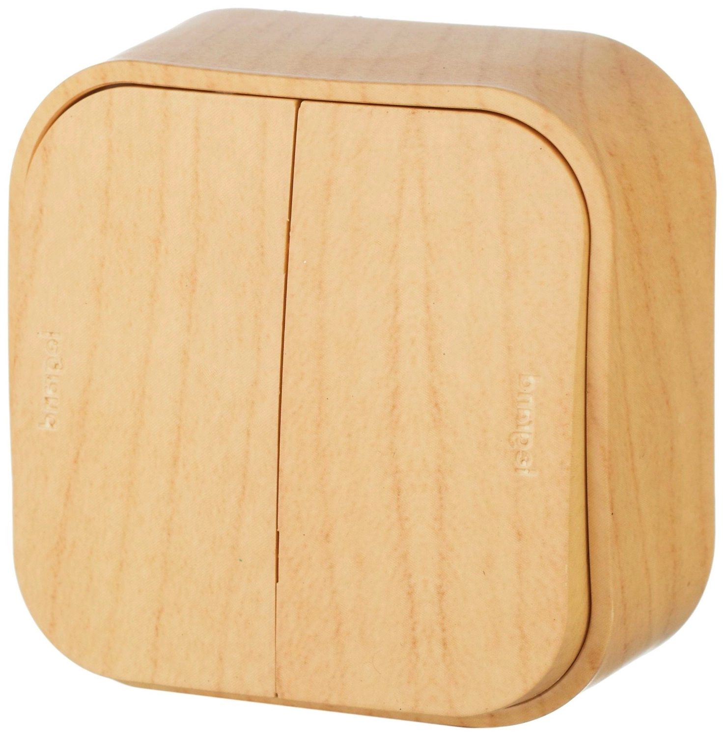 Выключатель серии Quteo используется для включения подачи тока в осветительный или другой бытовой прибор. Устройство предназначено для открытой установки накладным способом. Изделие имеет квадратную форму с округлыми углами и две клавиши. Данный выключатель изготовлен из прочного пластика под дерево и может устанавливаться в жилых или офисных помещениях.