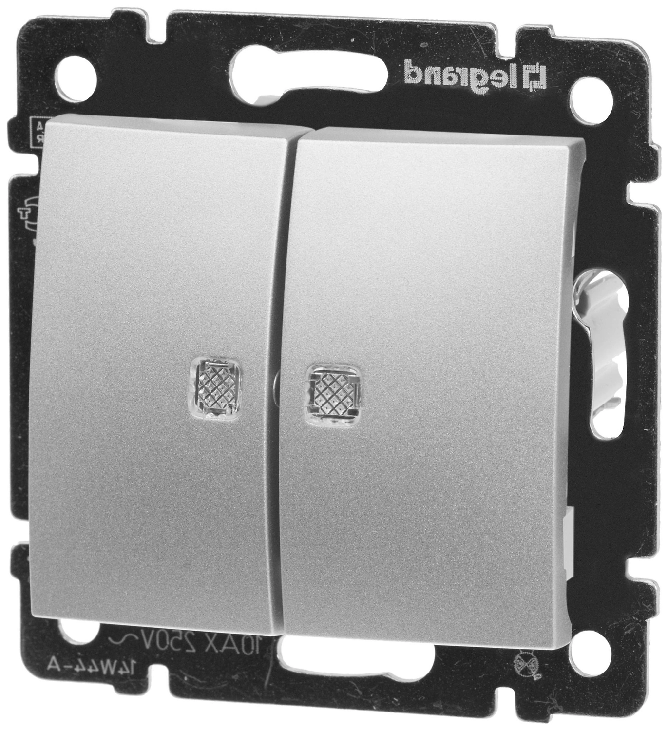 Выключатель используется для включения подачи тока в электроприбор и для включения освещения. Устройство предназначено для скрытой проводки и монтируется в стену. Изделие имеет квадратную форму и две клавиши с индивидуальной подсветкой. Данный выключатель изготовлен из прочного пластика серого цвета и может устанавливаться в жилых или офисных помещениях.