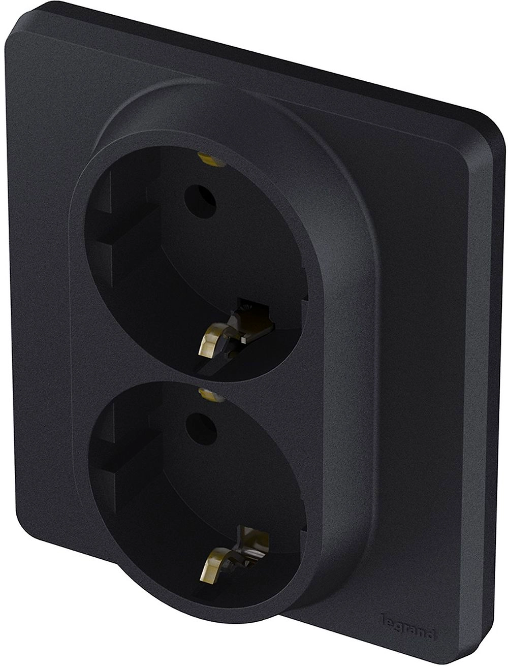 Данная двойная розетка применяется для электропитания в зданиях с проводкой с заземлением (с защитным проводником). Позволяет компактно разместить две розетки в одном установочном месте