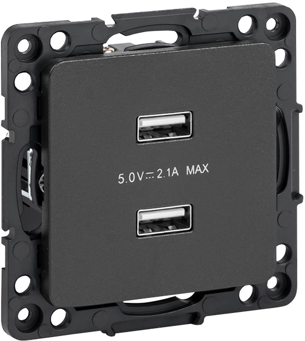 Розетка EKF Стокгольм USB 2-местная 2,1А черный
