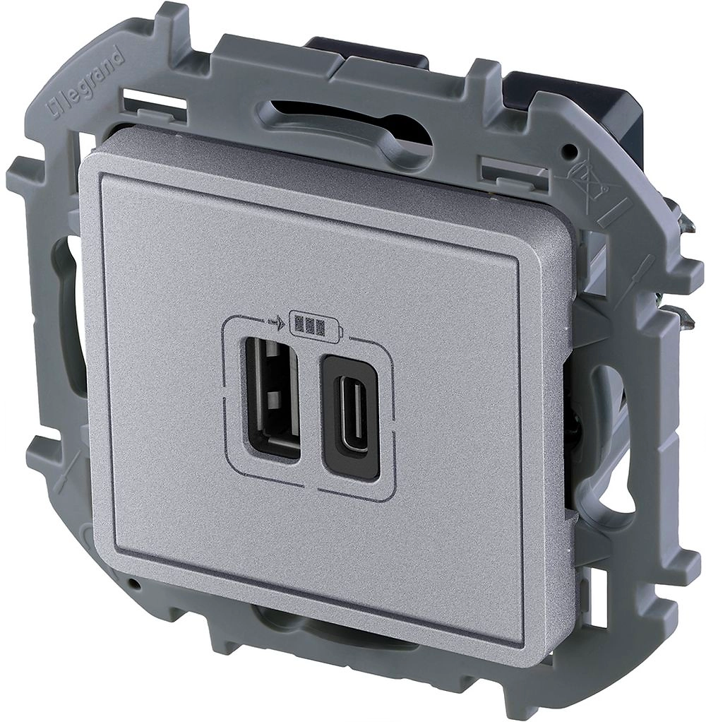 Розетка LEGRAND INSPIRIA USB + USB Type-C Алюминий