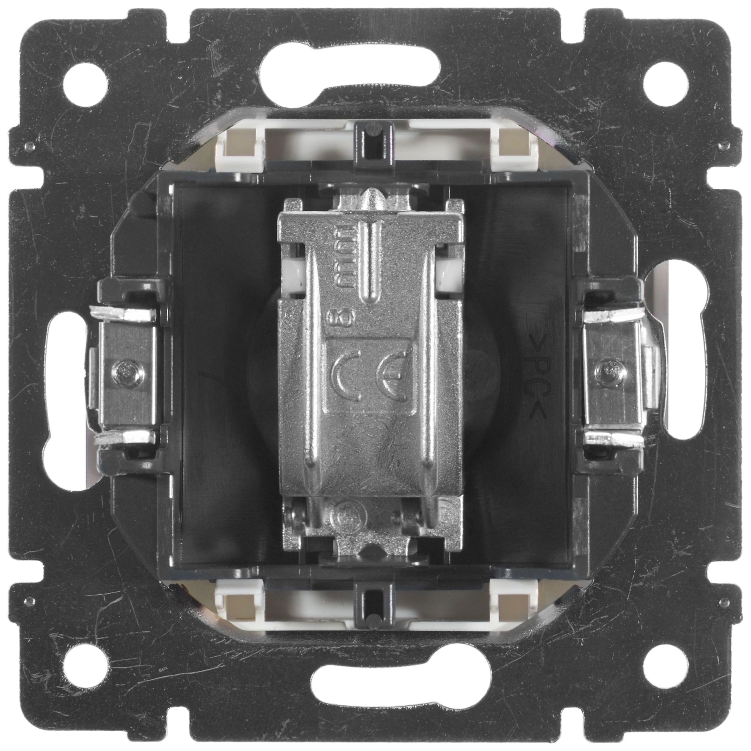 Конструкция представляет собой квадратный корпус с входом для кабеля, расположенным в центре. Изделие изготовлено из тугоплавкого пластика.