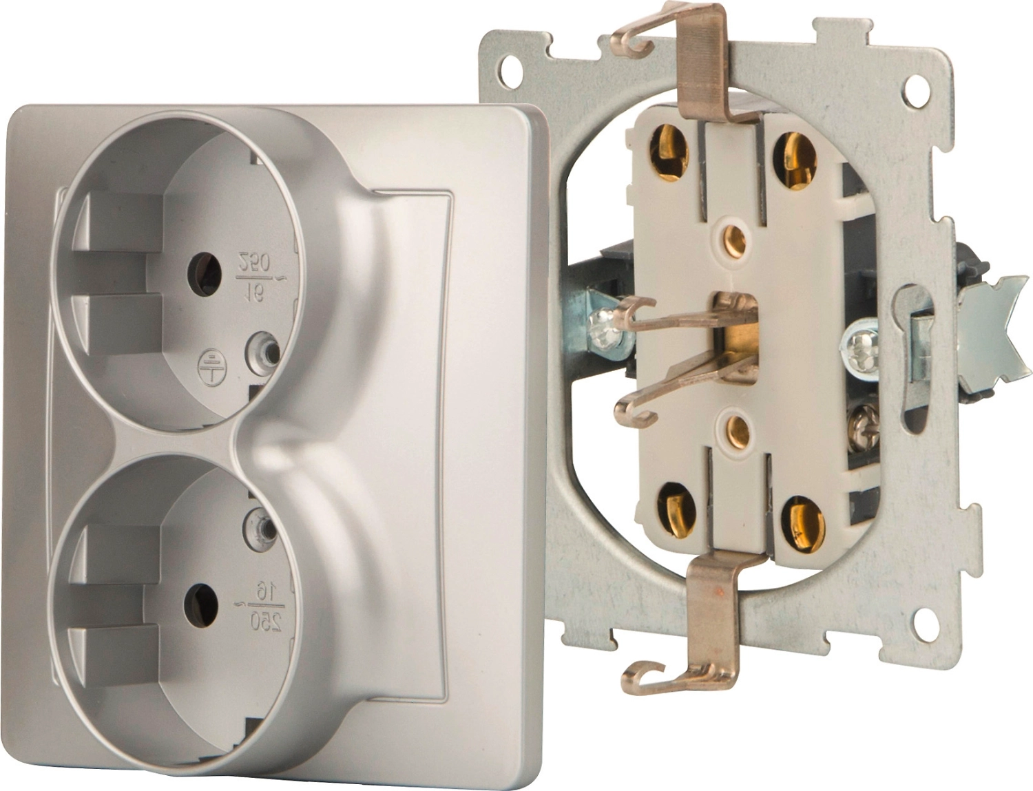 Розетка СП с заземлением OBI MARIBO 2 поста серебро. Внимание! Рамка не входит в комплект поставки.