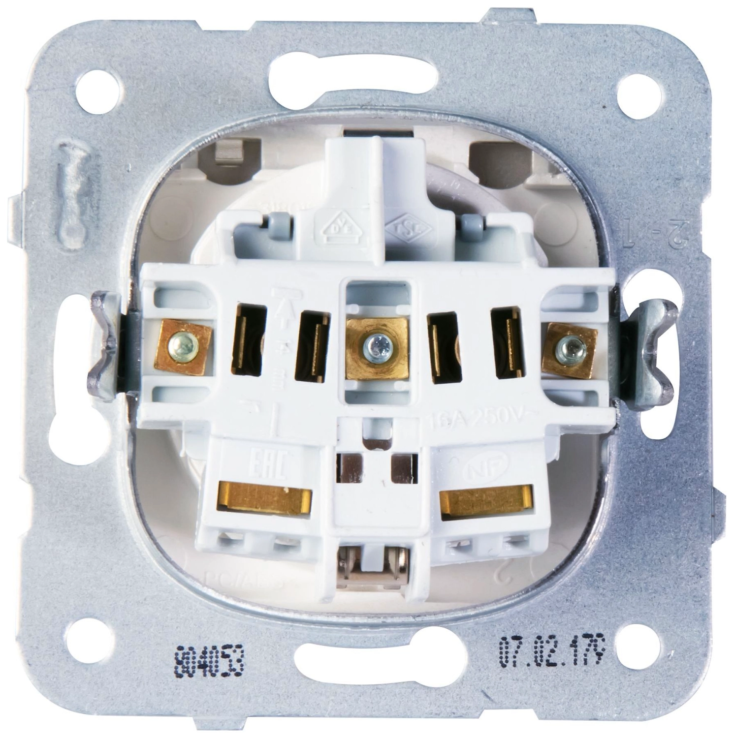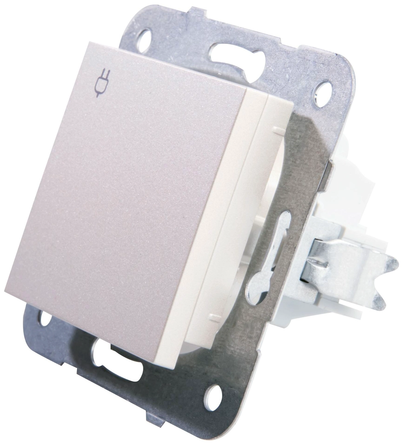 Розетка с заземляющим контактом, с защитными шторками и поднимающейся крышкой, без рамки.