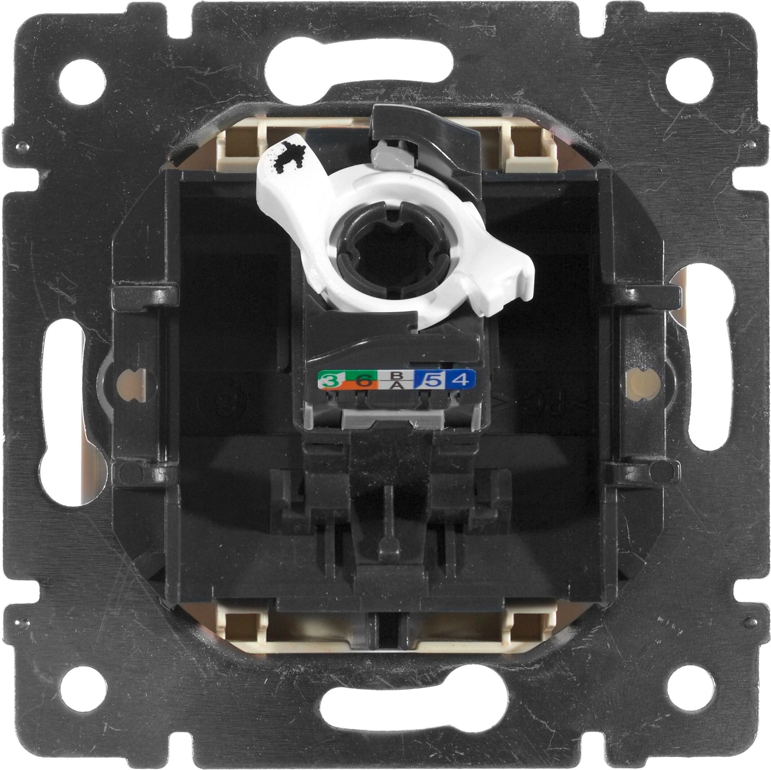 Информационная розетка для подключения компьютера. Контакты маркированы двойными цветовыми кодами. Самозачищающиеся контакты упрощают подключение механизма. 8 контактов.
