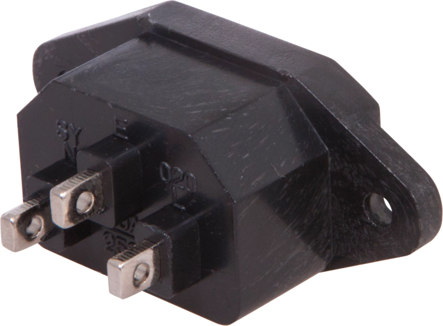 Cетевое гнездо на корпус используется для подключения оборудования к сети переменного тока. Гнездо крепится к корпусу с помощью боковых винтов.