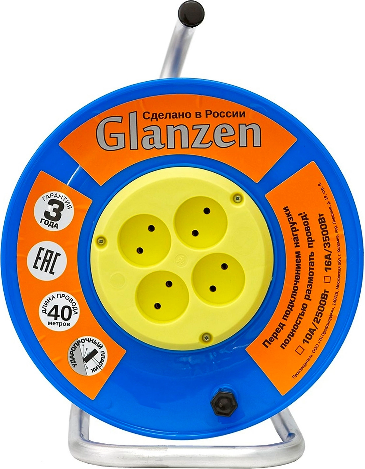 Удлинитель на катушке Glanzen EB-40-018 4 гнезда 1300 Вт 40 м