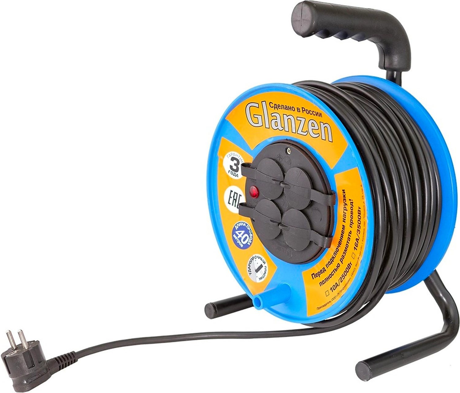 Удлинитель на катушке Glanzen EB-40-020 4 гнезда 3500 Вт с заземлением 40 м