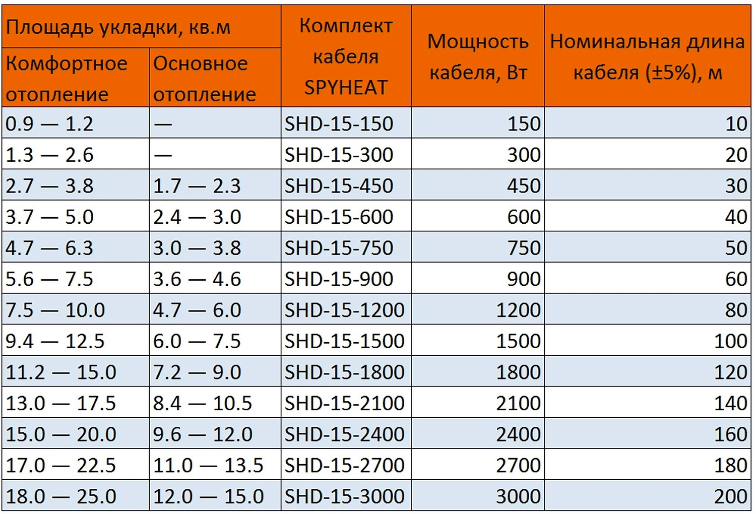 Комплект теплого пола кабельный SPYHEAT КЛАССИК SHD-15-600 2,4-5 кв.м 40 м
