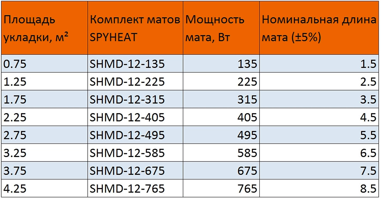 Нагревательные маты ""SPYHEAT Практик"" применяются в тех случаях, когда у Вас нет возможности поднимать существующий уровень пола или Вы не планируете делать толстую стяжку, а также если Вы хотите максимально сократить сроки монтажных работ. При использовании нагревательных матов для комфортного подогрева пола в качестве финишного покрытия должны использоваться материалы с высокой теплопроводностью, такие как керамическая плитка, натуральный или искусственный камень.