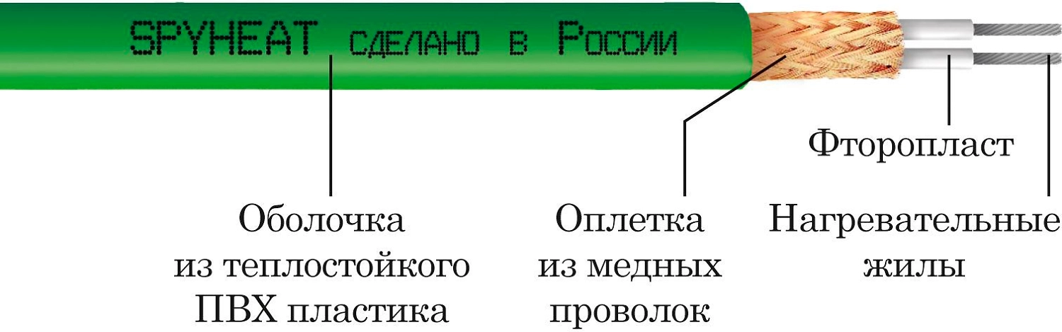 - Нагревательные жилы экранированы медной оплеткой, подключаемой к заземляющему проводнику, что увеличивает надежность и электробезопасность системы