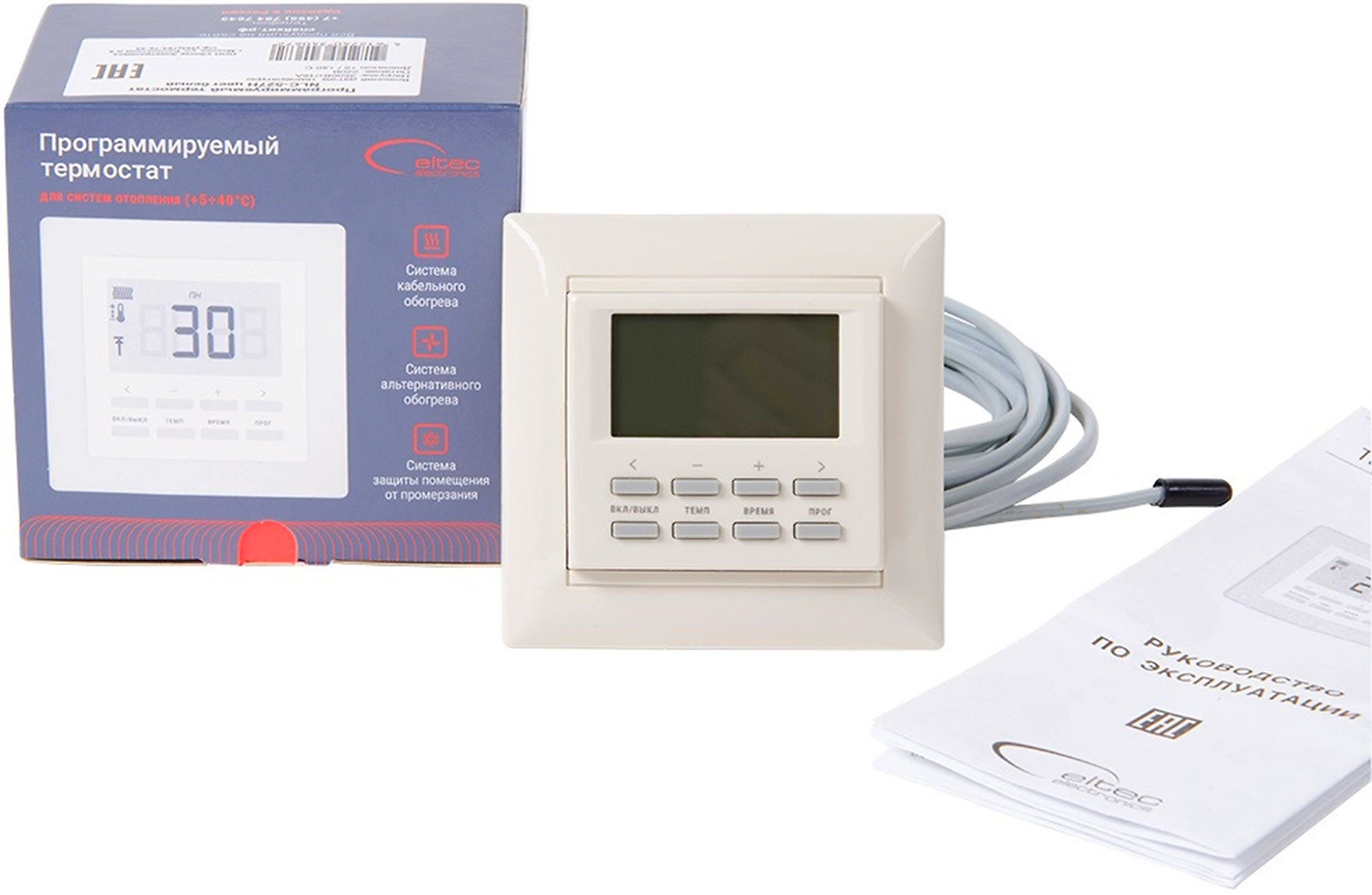 Монтаж осуществляется в помещениях с температурой 0 -+50 град. Цельсия и влажностью не более 80%. Корпус стандартный встраиваемый, для установки в стандартную стеновую коробку диаметром 60 мм.Эксплуатация термостата не требует специального обслуживания