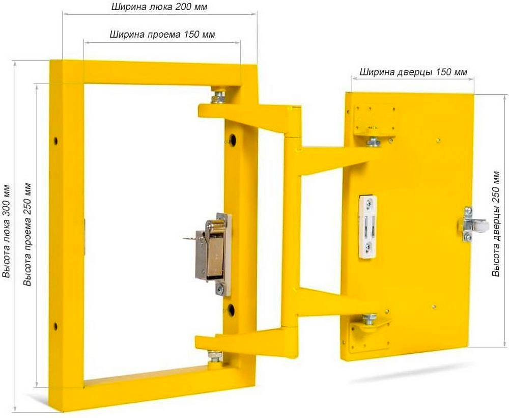 Стальной люк Формат КН 20-30, с шириной 200 мм и высотой 300 мм, предназначен для доступа к счётчикам учёта горячей и холодной воды, к кранам, к сливной трубе под ванной.