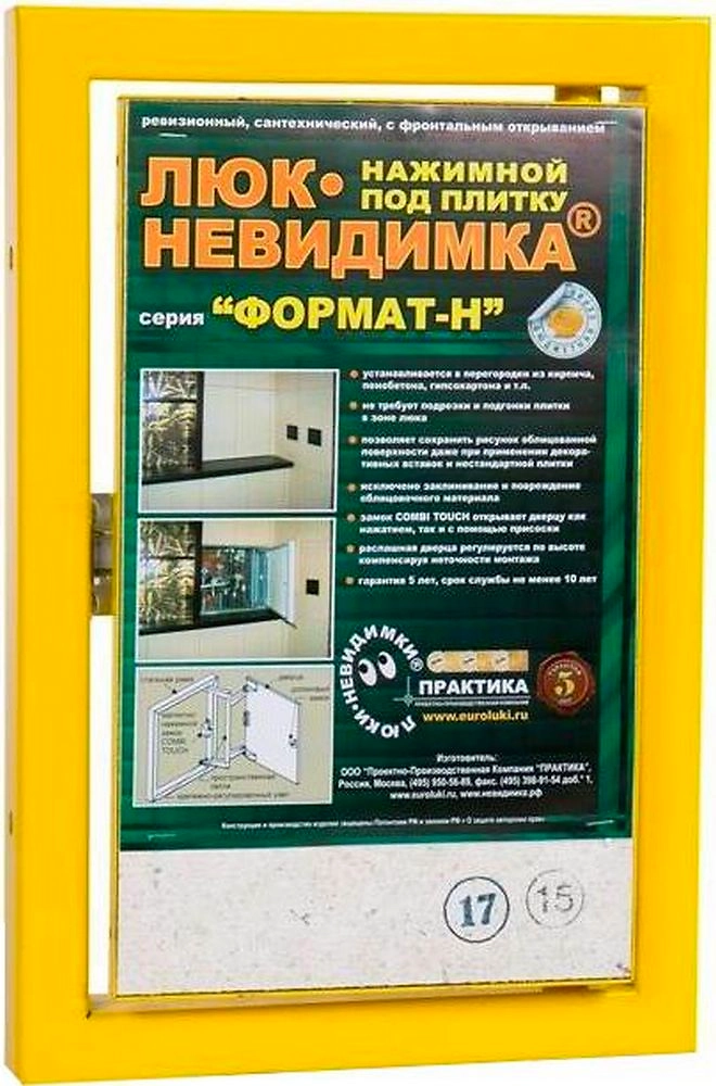 Распашная дверца люка 150х250 мм открывается на 180 градусов и может быть облицована керамической плиткой и другими отделочными материалами, общим весом до 6 кг. Чтобы открыть дверцу, используется мощный магнитно-нажимной замок CombiTOUCH.