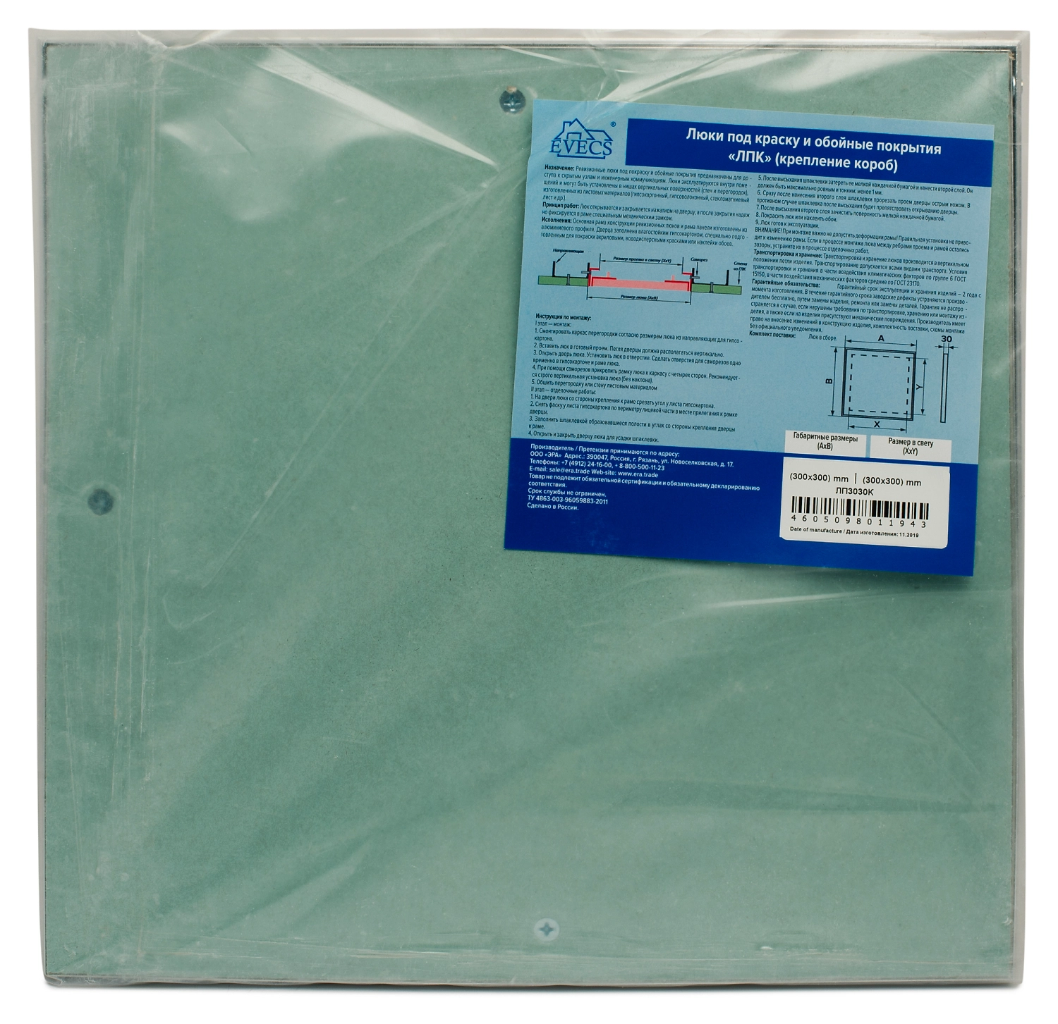 Люк ревизионный 300х300 мм под покраску алюминиевый Evecs