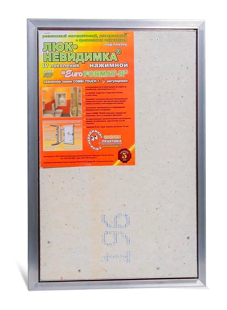 Ревизионный сантехнический Люк невидимка под плитку ЕвроФОРМАТ-Р АТР предназначен для скрытого доступа к инженерным и сантехническим коммуникациям. Наличие магнитно - нажимного замка позволяет открывать люк как нажатием, так и с помощью вакуумной присоски. Отличается от подобных изделий продуманностью каждой детали. Для успешного функционирования этот люк не требует газовых амортизаторов.