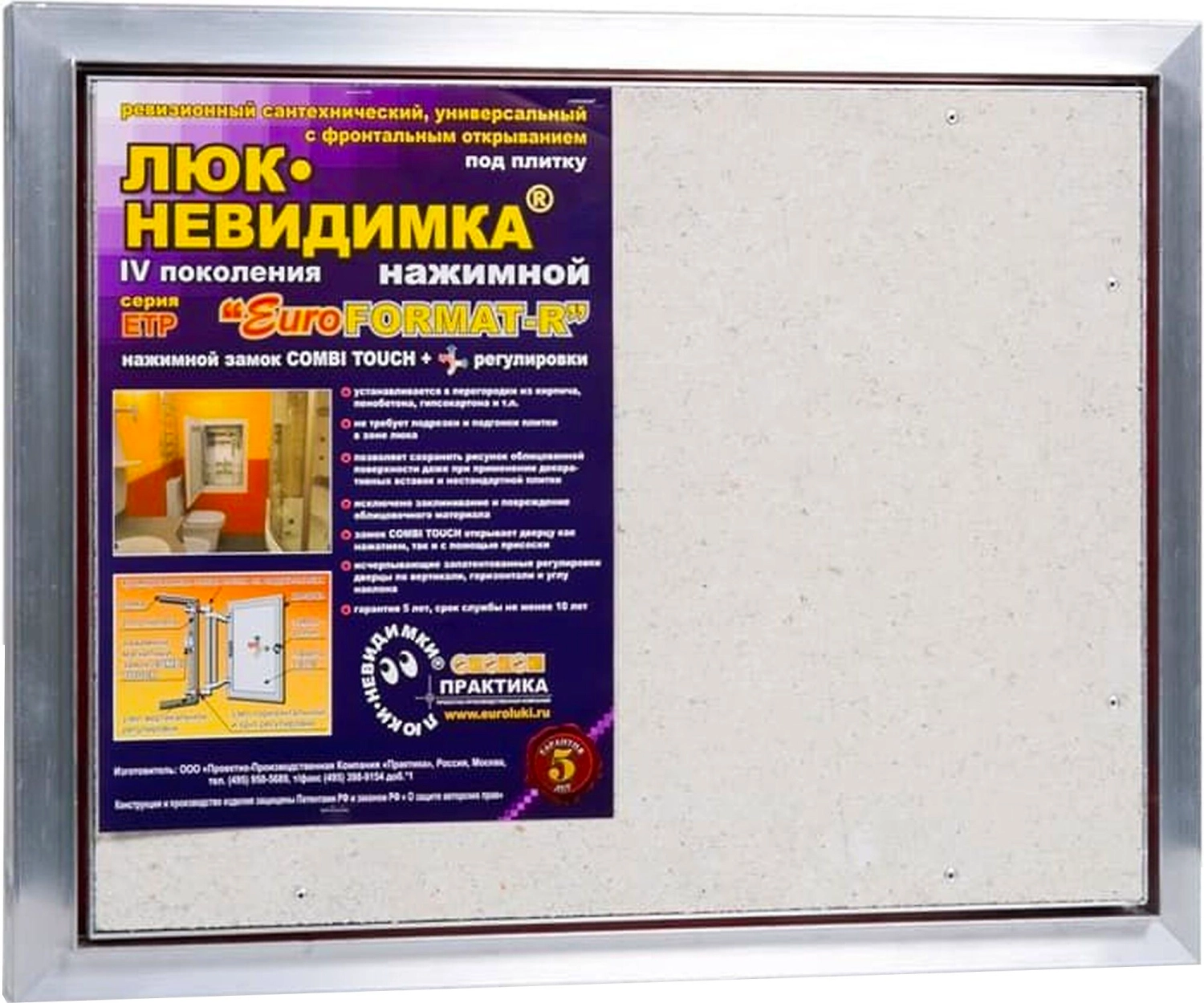 Ревизионный сантехнический люк невидимка под плитку ЕвроФОРМАТ-Р ЕТР предназначен для скрытого доступа к инженерным и сантехническим коммуникациям.