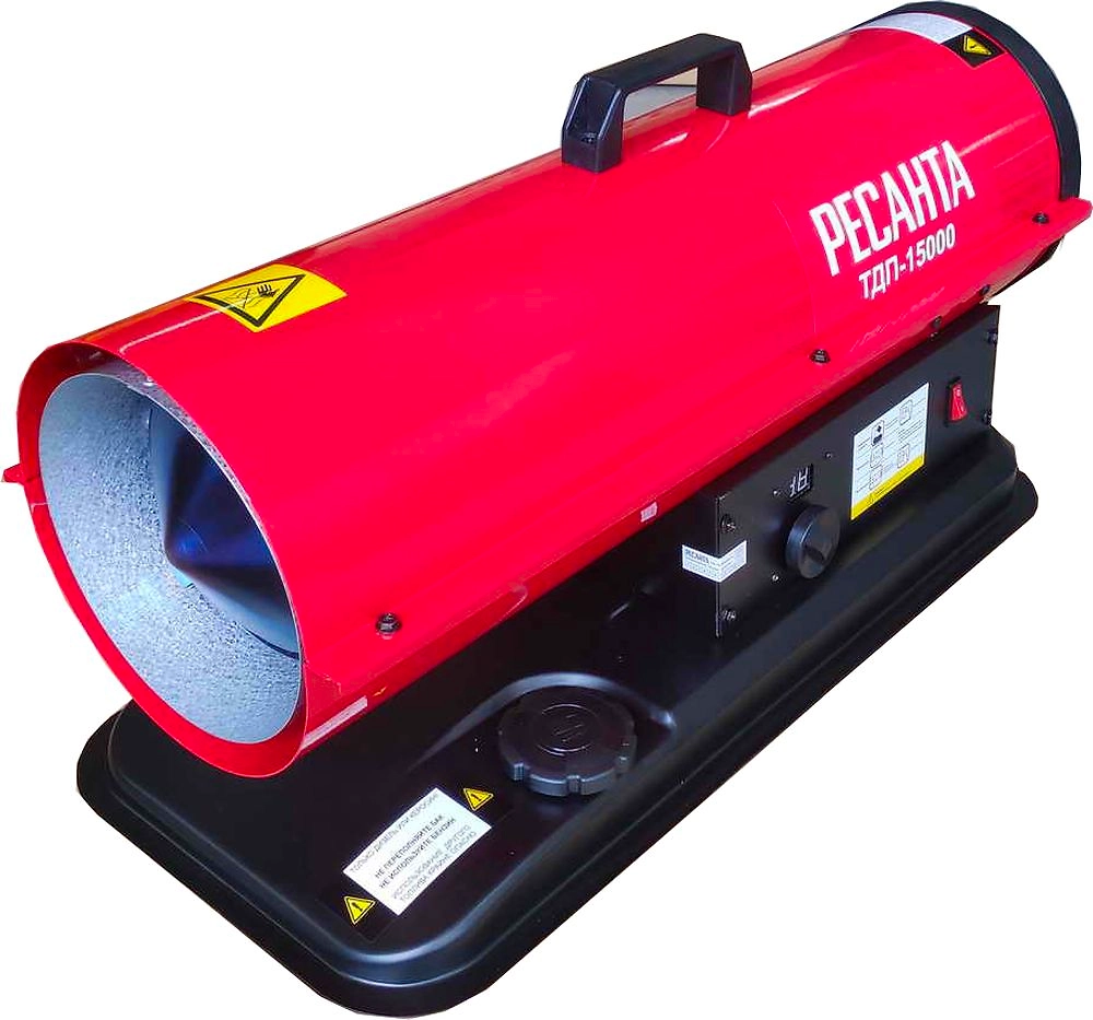 Тепловая дизельная пушка Ресанта ТДП-15000 представляет собой функциональное оборудование, которое служит для обогрева гаражей, складских и строительных помещений.