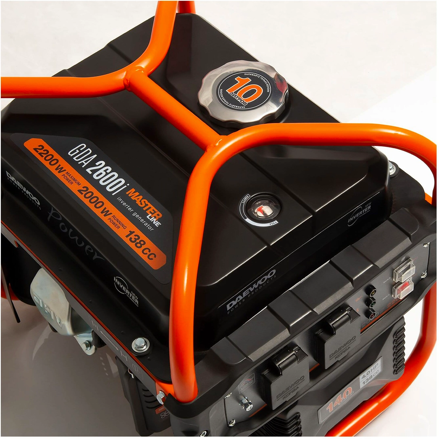 DAEWOO GDA 2600i - автономная бензиновая миниэлектростанция инверторного типа мощностью 2,2 кВт, к которой без опаски можно подключить чувствительные к скачкам напряжения приборы.